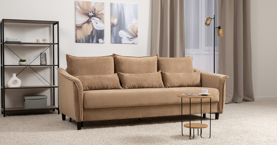 Диван-кровать прямой Эмили ТД 911 велюр светло-бежевый