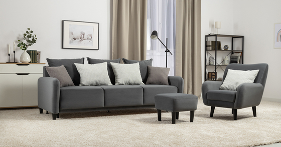 Диван-кровать прямой Оксфорд 712 композиция 3, MUZA 07 светло-серый, модульная система