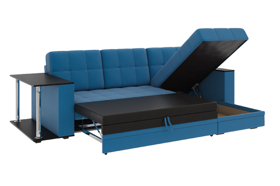 Диван-кровать угловой Тэдди 1504 композиция 2, букле Pique 009 синий, модульная система, сборка на любую сторону