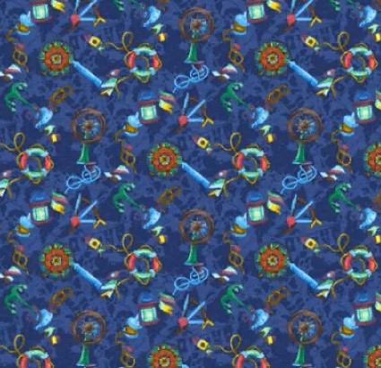 Детская ткань на выбор в соответствии с картинкой карточки - Т 27 якоря на синем.