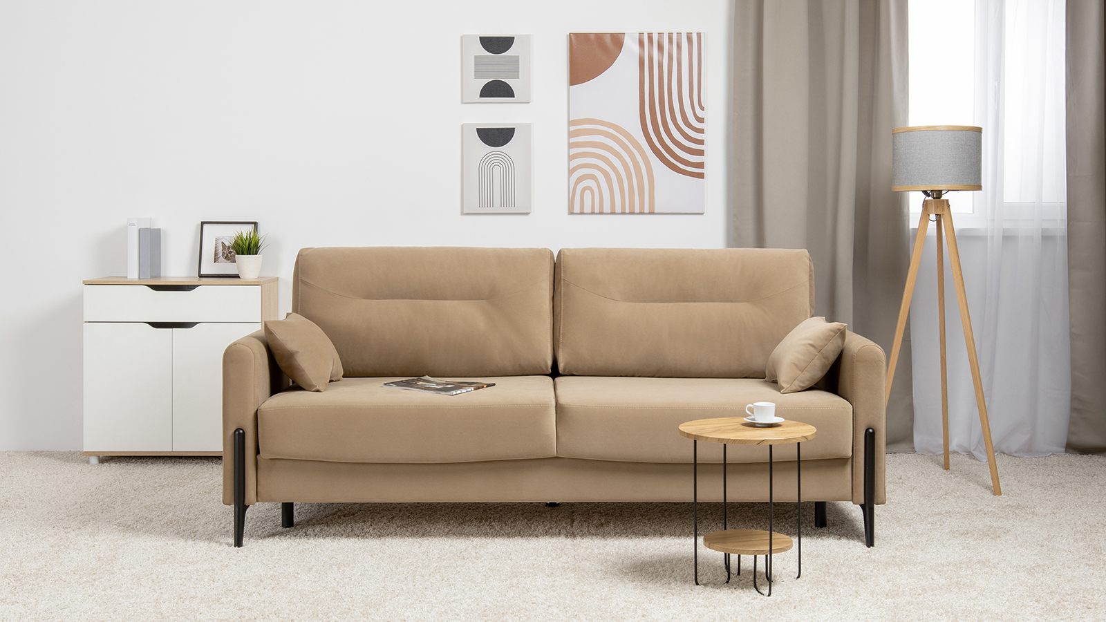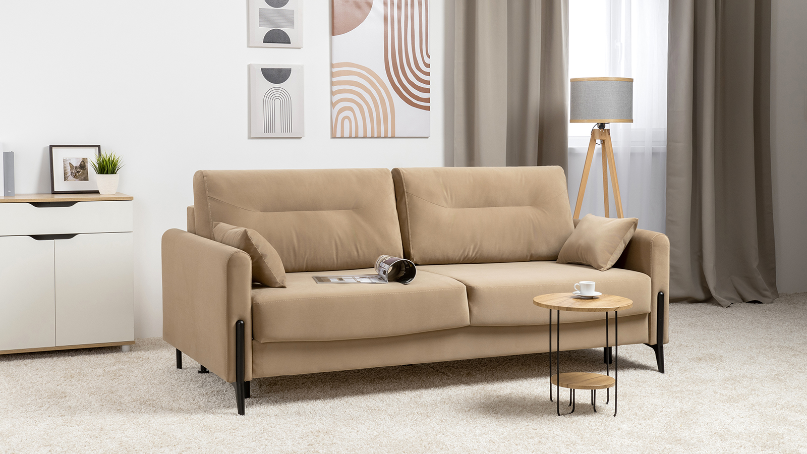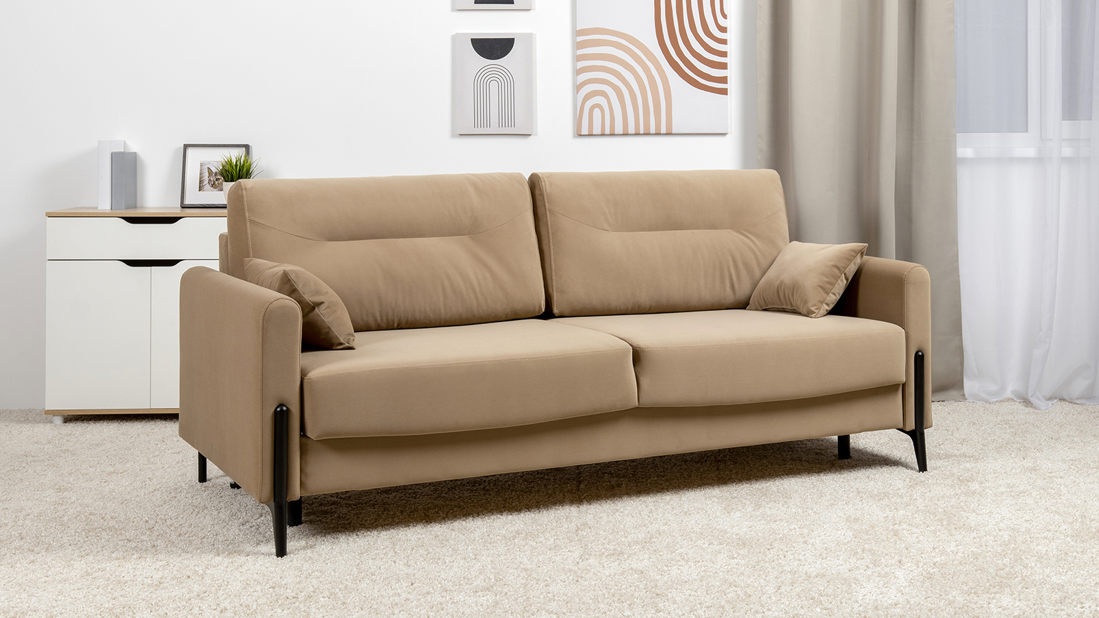 Диван-кровать прямой Барселона ТД 670 велюр Diagonal 290 бежевый