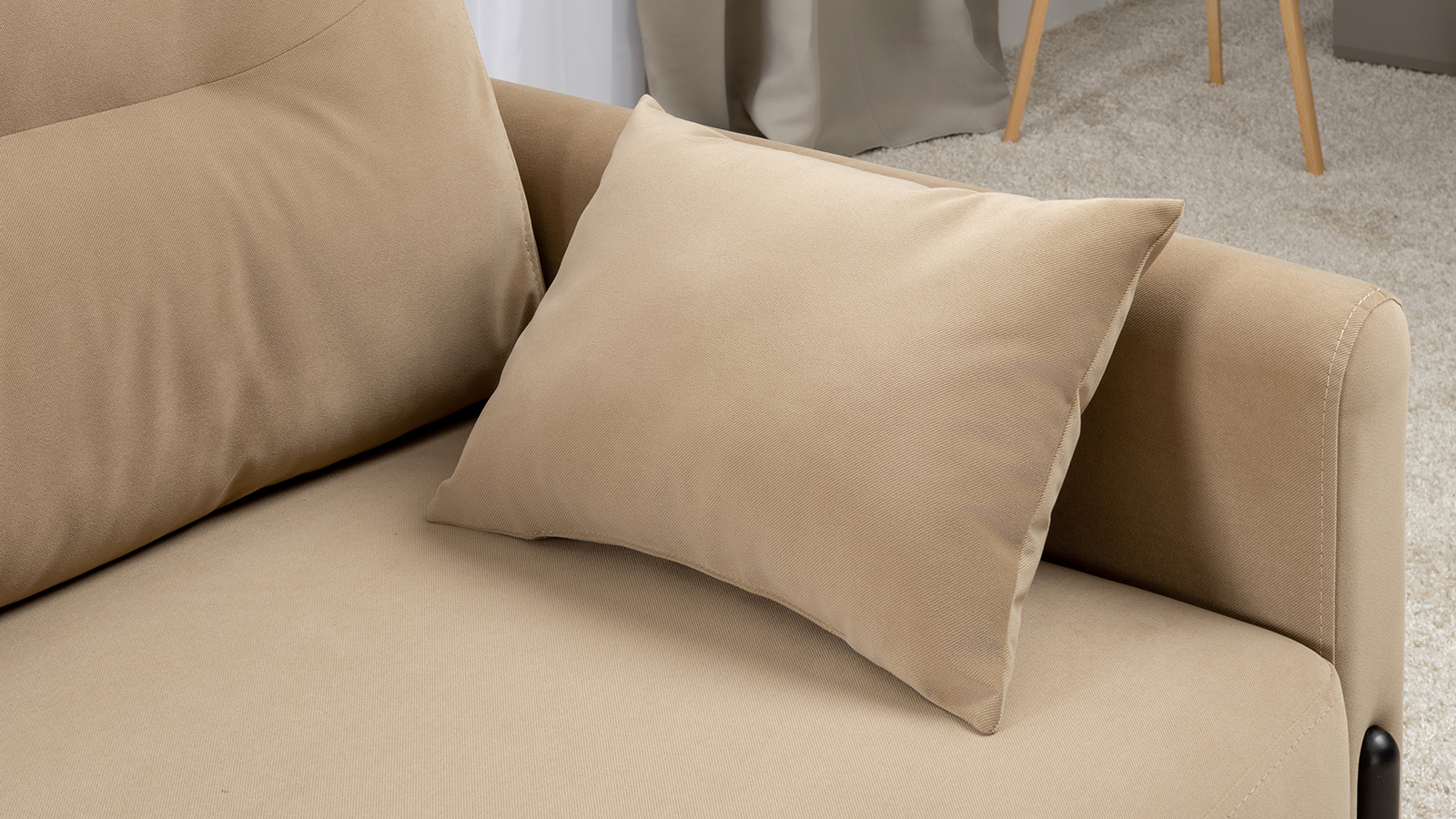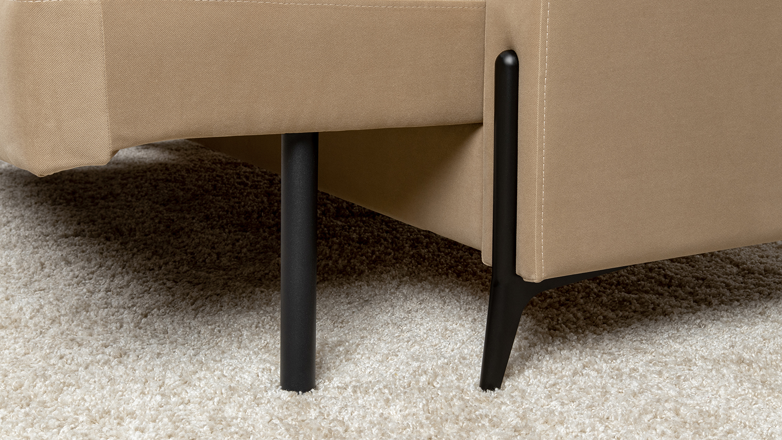 Металлические опоры плавно переходят в декоративный элемент подлокотника. Декоративная утяжка по приспинным подушкам