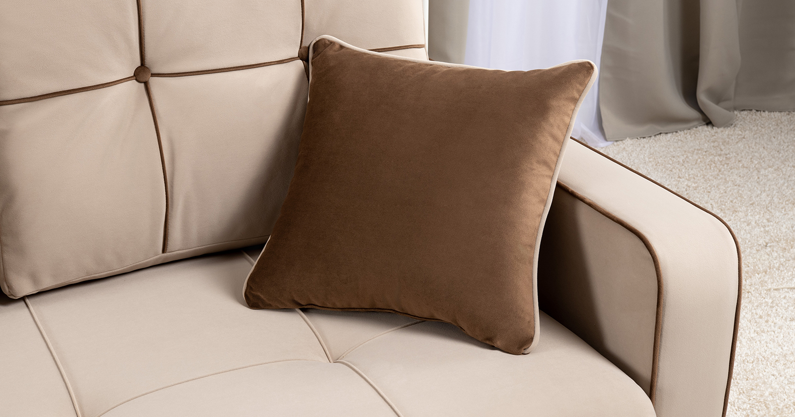 Модные диваны Черри Н порадуют поклонников современного стиля. Контрастные канты, пуговицы и декоративные подушки делают этот диван ярким акцентом интерьера.