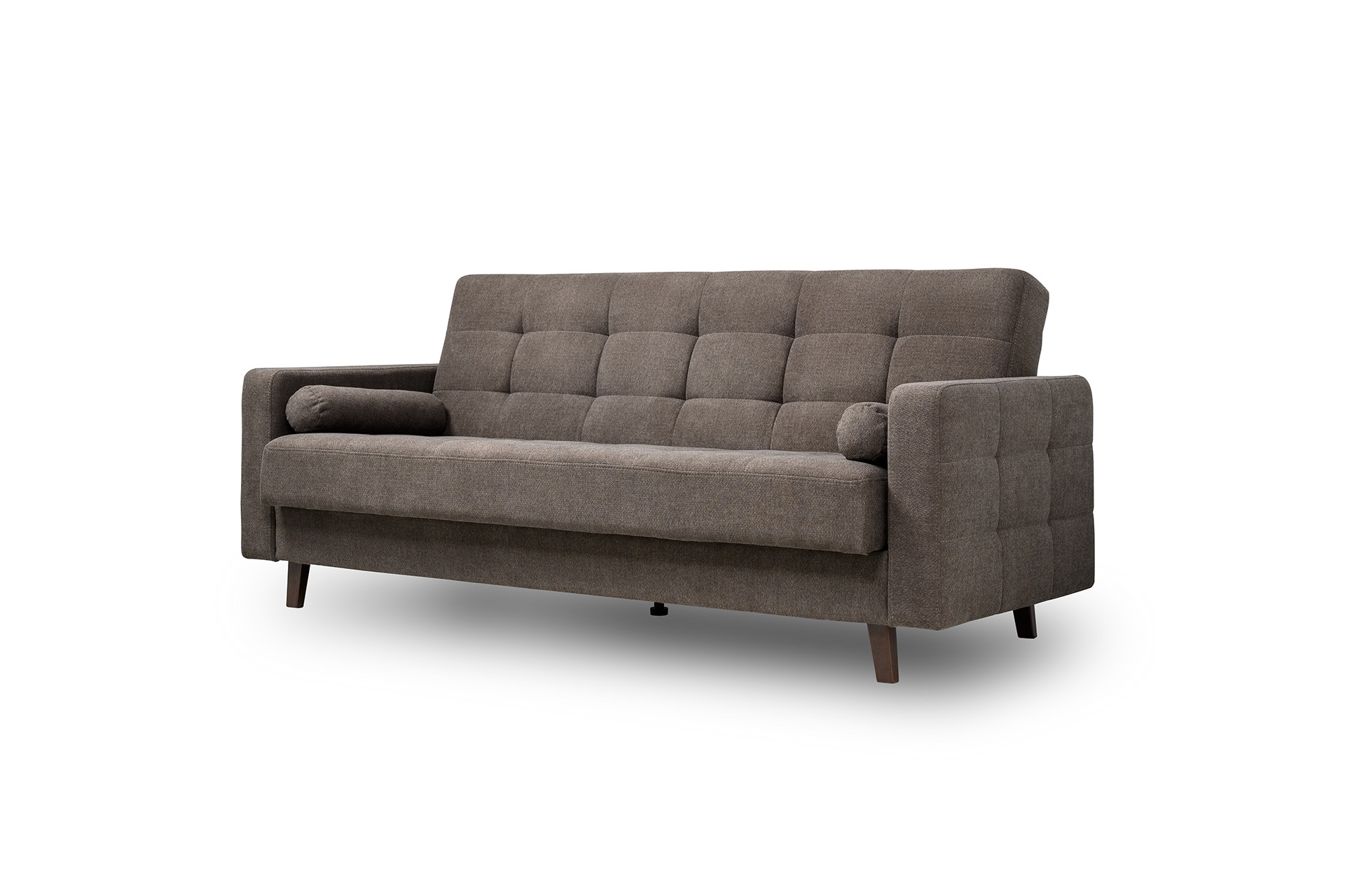 Прямоугольная стежка по спинке, посадочному месту и подлокотниках, круглые подушки-валики