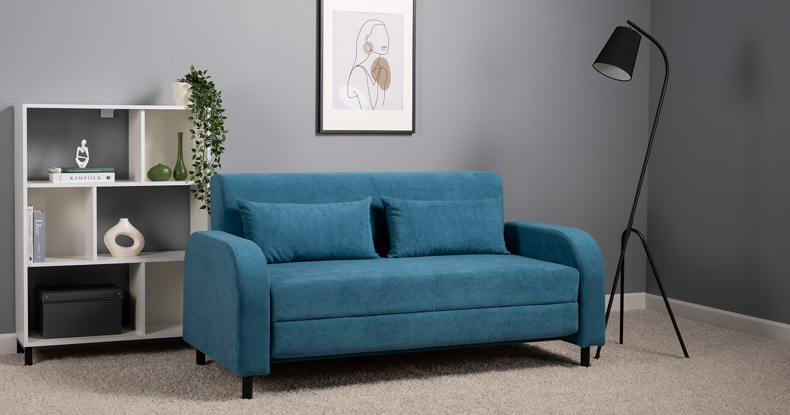Диван-кровать прямой Черри ТД 285 велюр Irida 07 синий, Эвита пистачио ментоловый