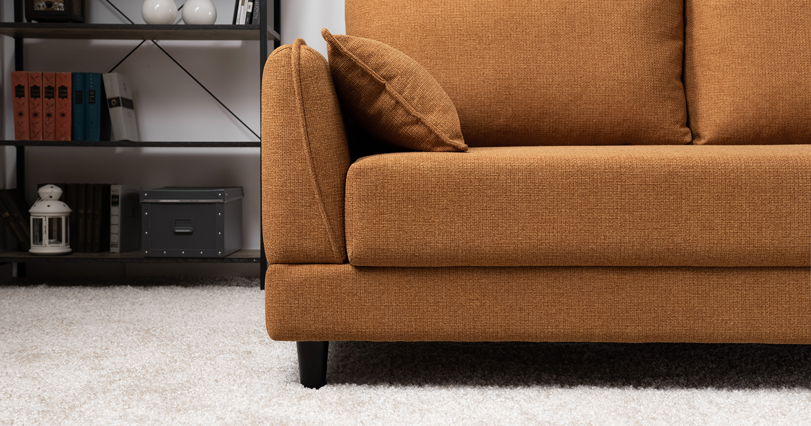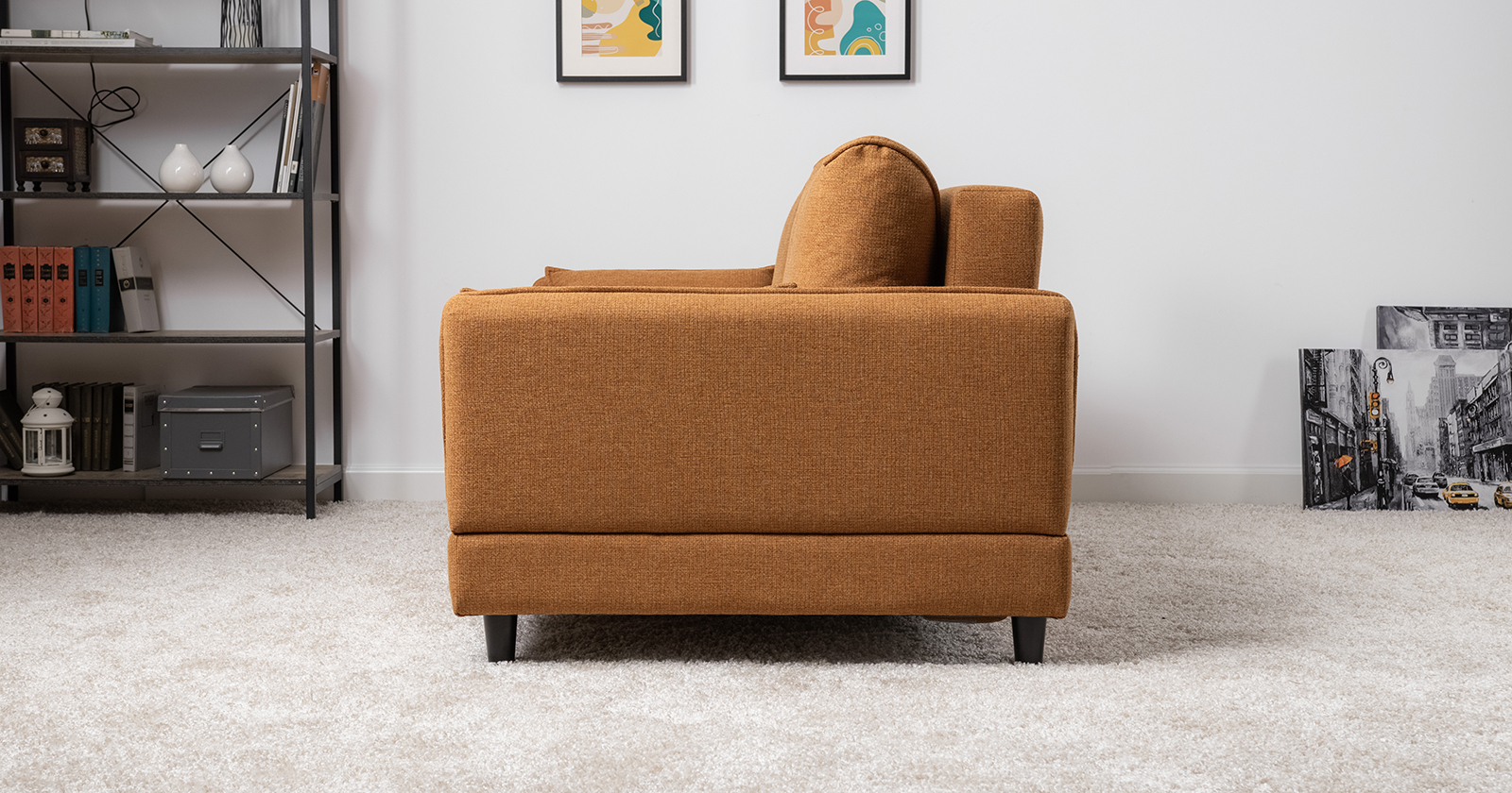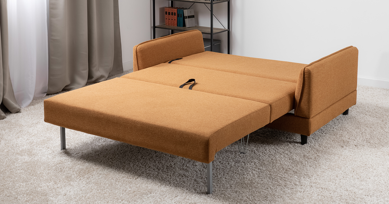 Лаконичный дизайн с деревянными ножками и узкими подлокотниками удачно дополнит не только интерьер гостиной, но и кабинета, и кухни. Кроме того, диван Макс позволяет организовать спальное место в ограниченном пространстве.