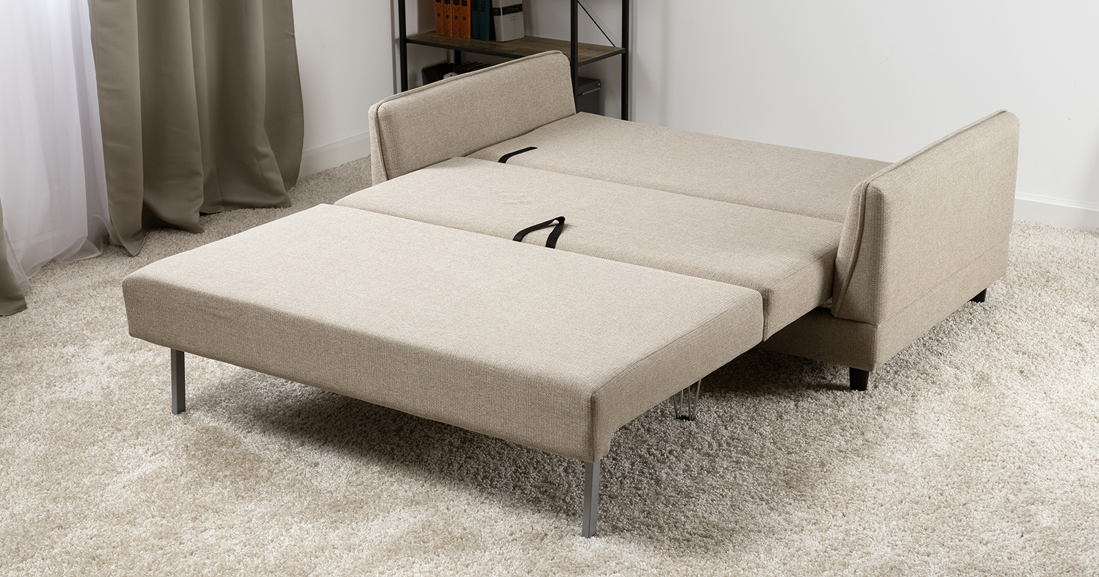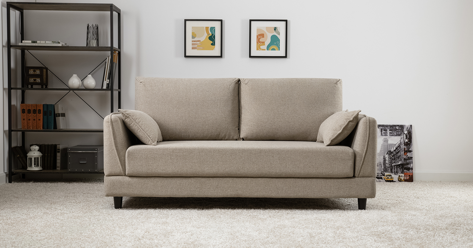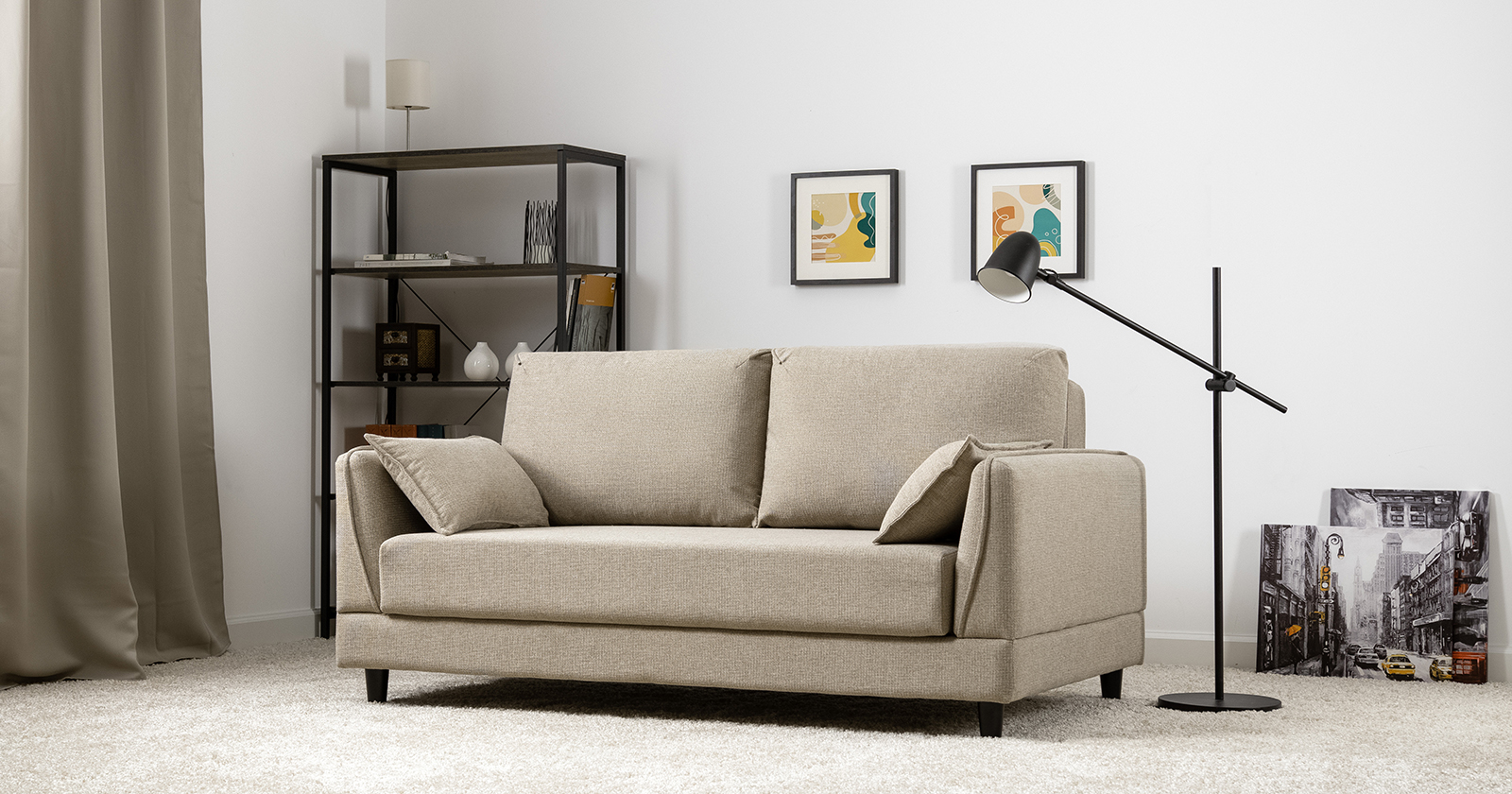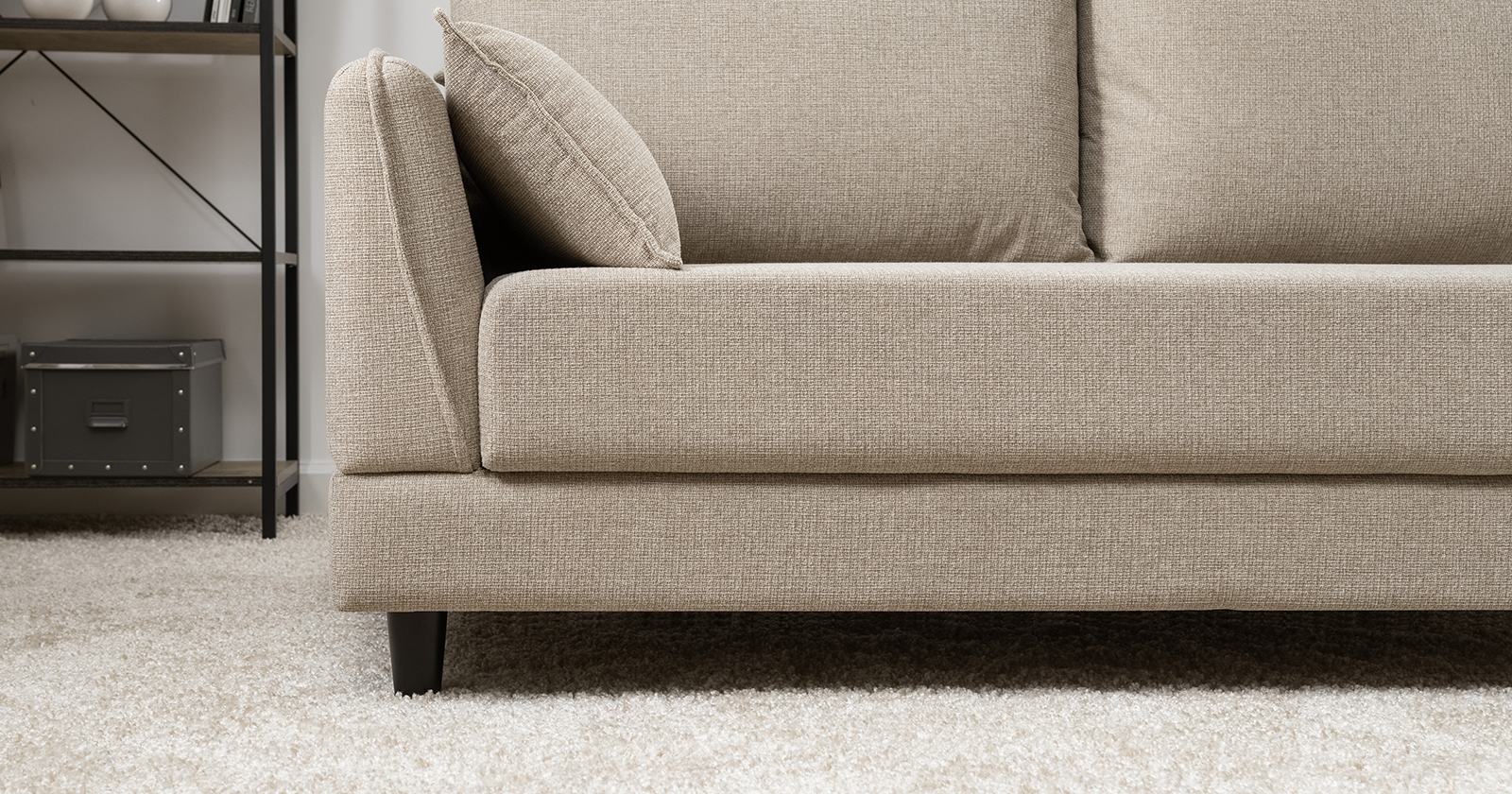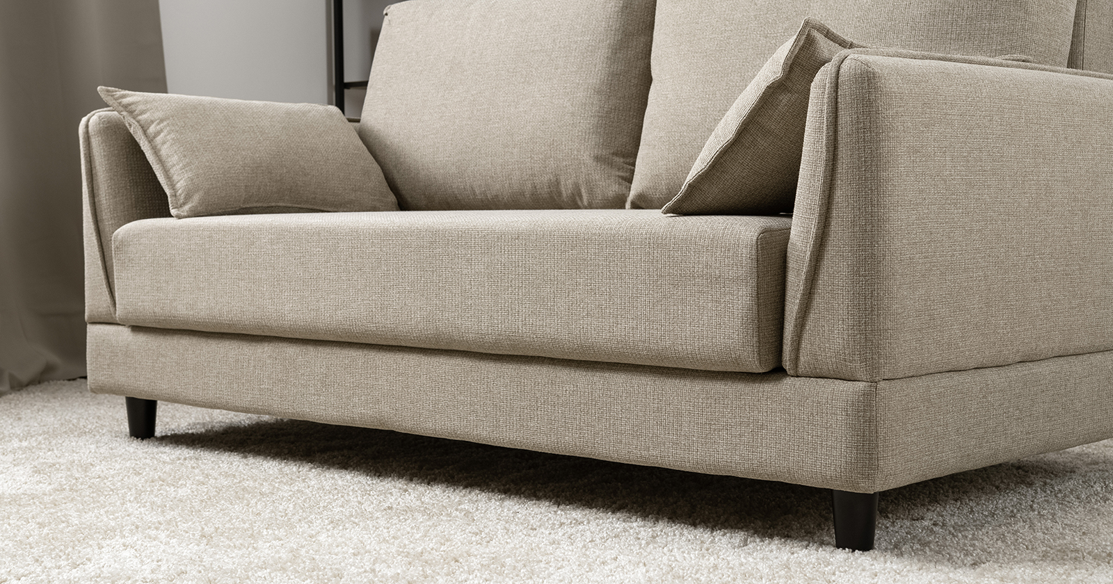 Лаконичный дизайн с деревянными ножками и узкими подлокотниками удачно дополнит не только интерьер гостиной, но и кабинета, и кухни. Кроме того, диван Макс позволяет организовать спальное место в ограниченном пространстве.