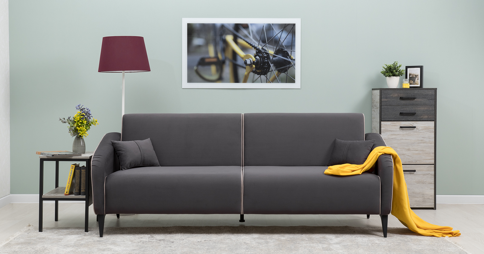 Стильный компактный диван-книжка для современных интерьеров. Дополнит гостиную, сэкономит место в гостевой, сделает уютным и функциональным кабинет или офис.