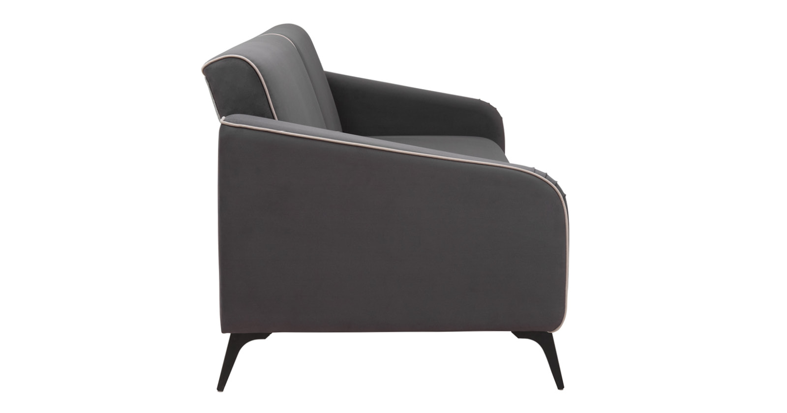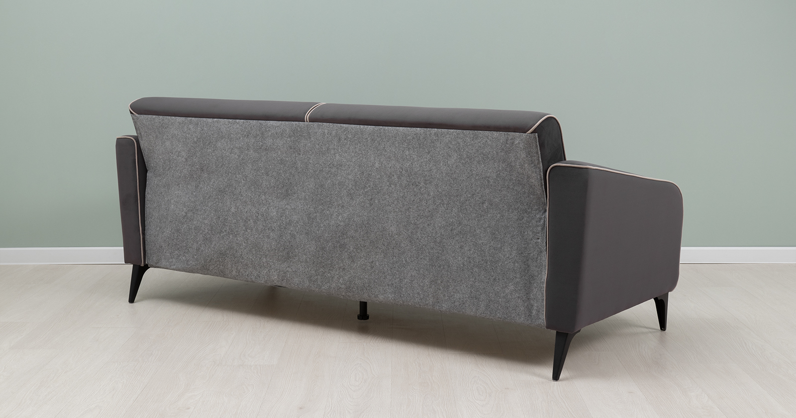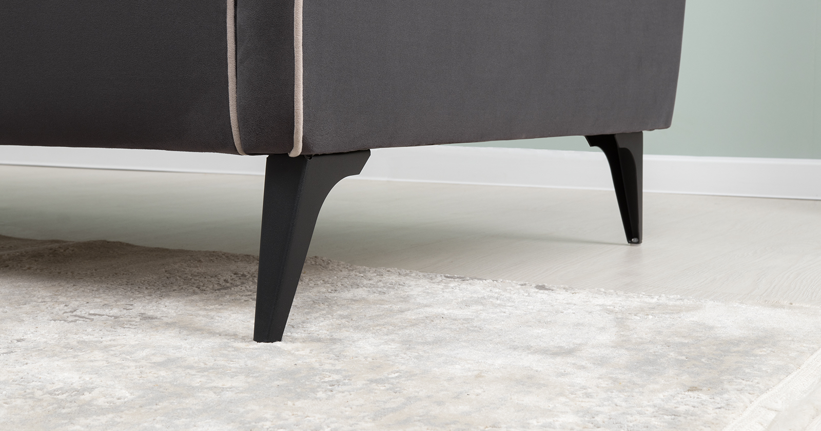 Спинка и сиденье разделяются пополам двойным кантом по центру и одинарным по краям сидения, для придания одной единой формы. Подлокотники с изгибом на лицевой стороне и мягкими закругленным углом со складками, с выраженным контрастным ровным кантом по внешнему контуру изделия и изогнутой линией канта.