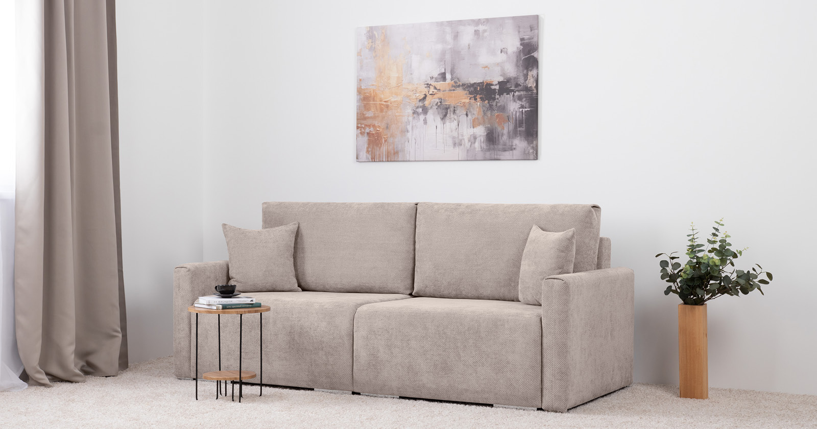 Диван-кровать прямой Оксфорд 710 композиция 3, шенилл Muza 04 светло-бежевый, модульная система