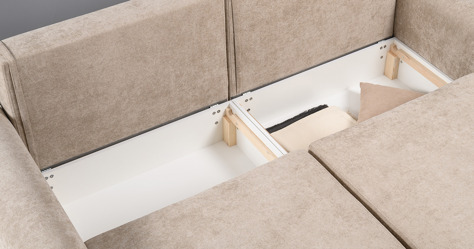 Диван-кровать угловой Тэдди 1502 композиция 2, букле Pique 006 бежевый, модульная система, сборка на любую сторону