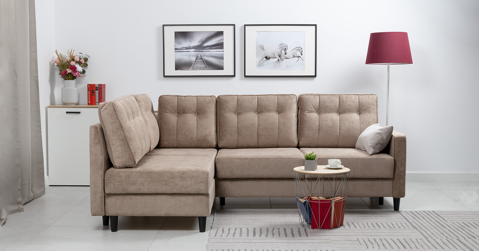Диван-кровать угловой Арно ТД 565 велюр Лаки 04 песочный, Vertical 910 молочно-серый, сборка на любую сторону