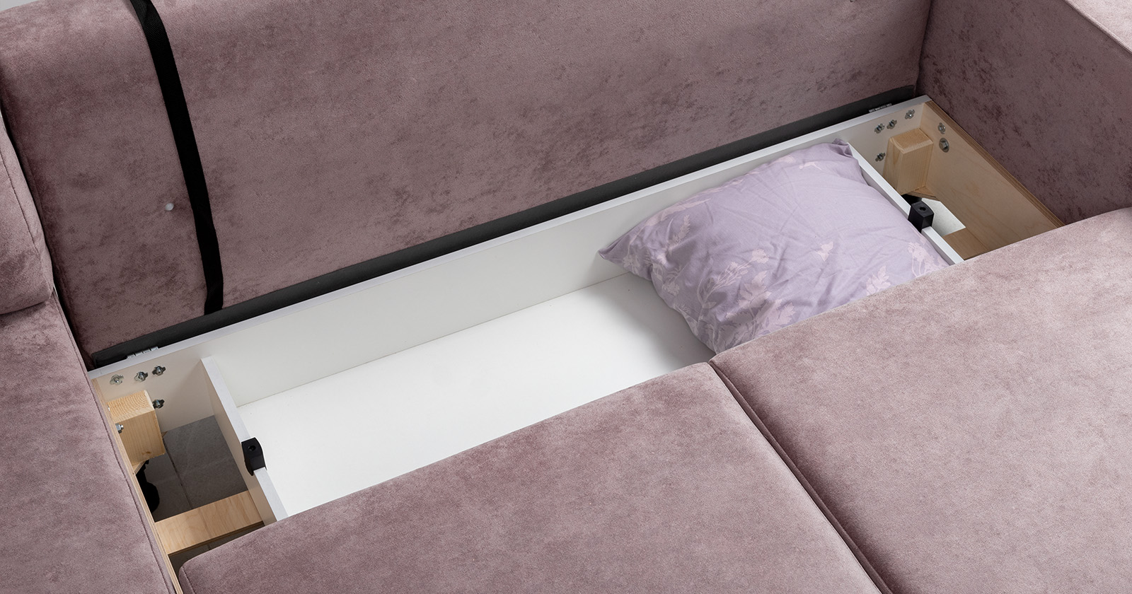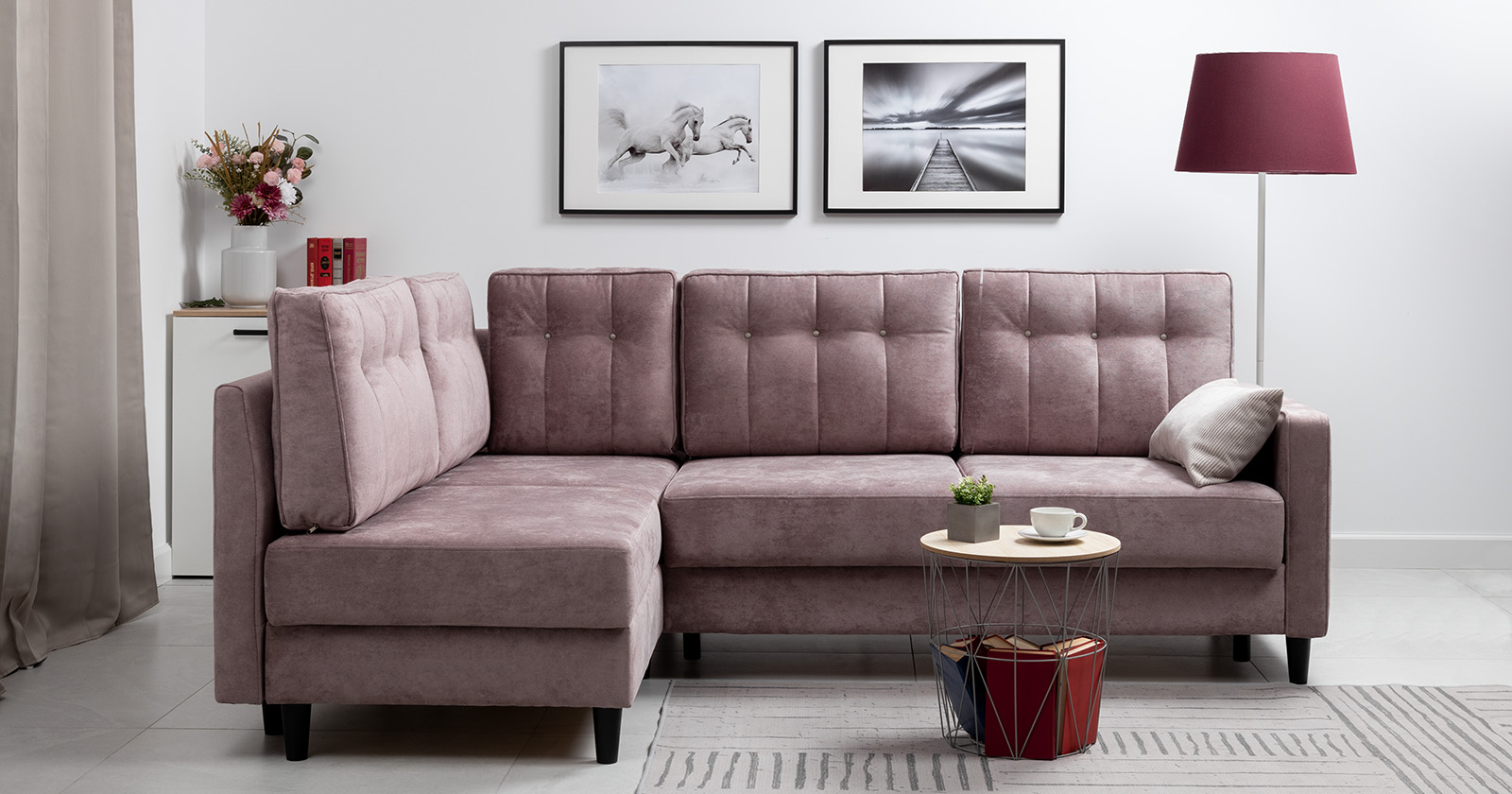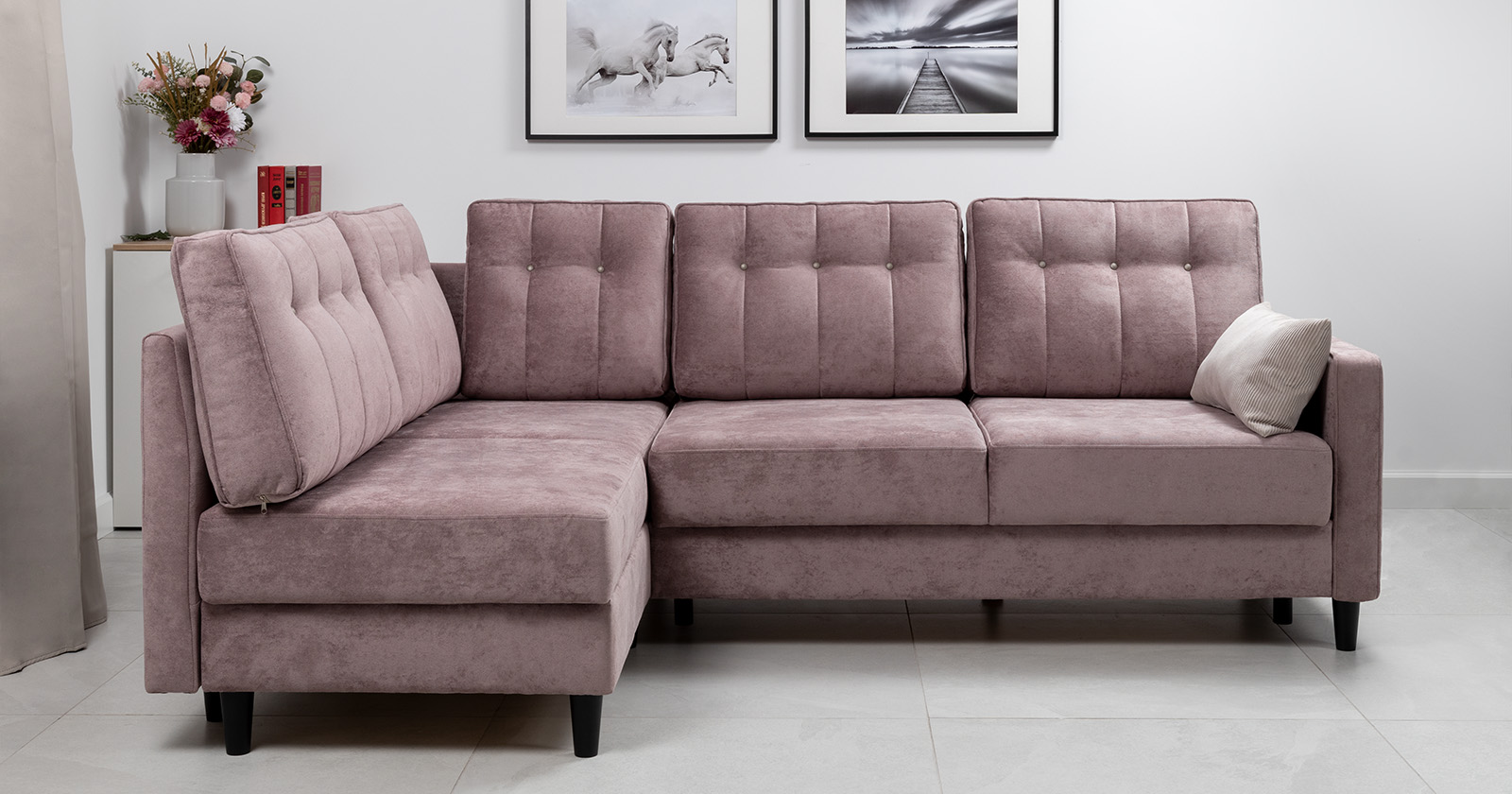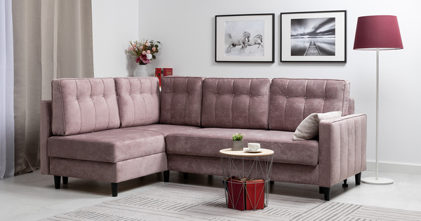 Диван-кровать угловой Арно ТД 567 велюр Лаки 17 пепел розы, Vertical 910 молочно-серый, сборка на любую сторону