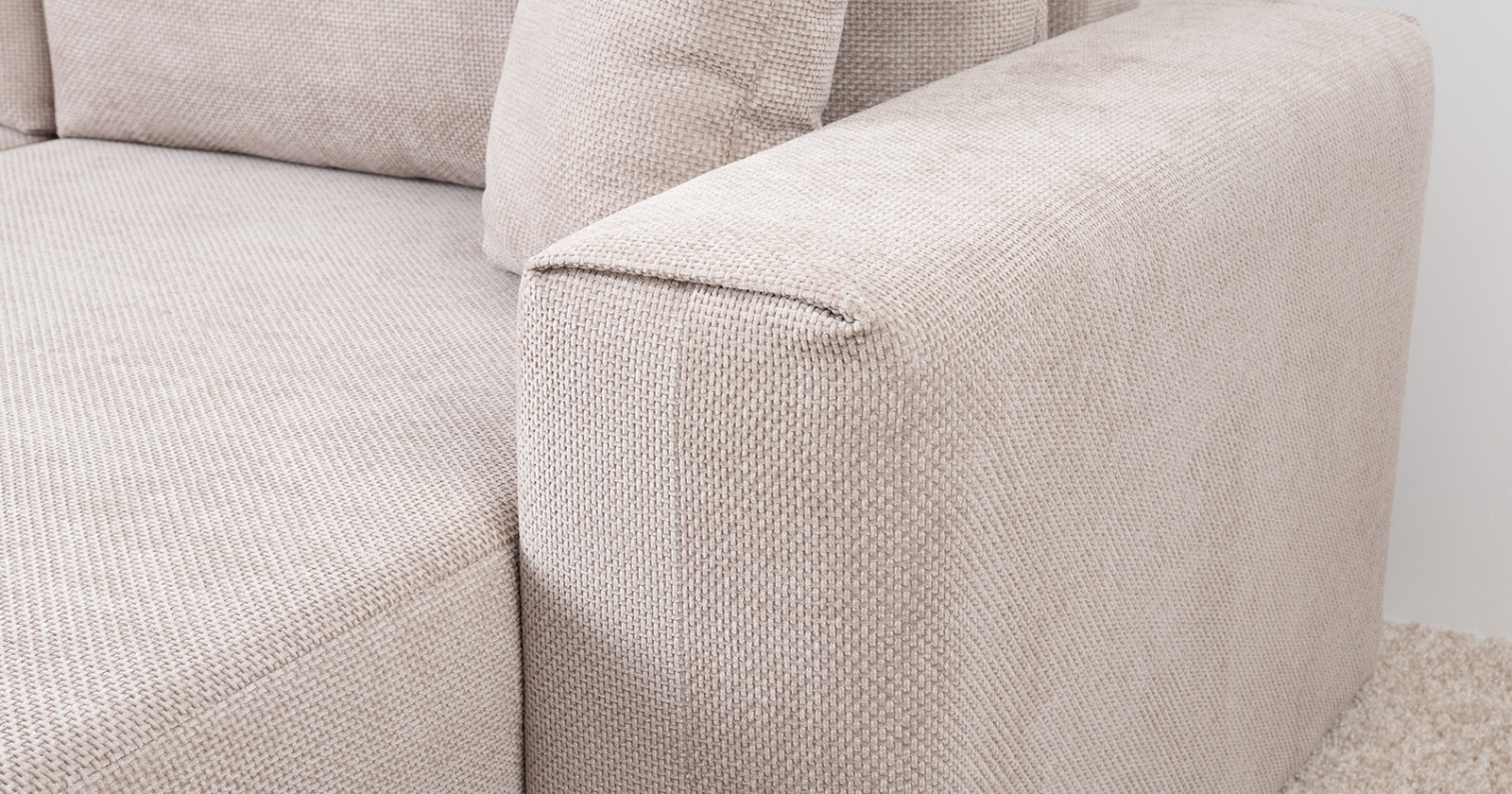Диван-кровать угловой Тэдди 1502 композиция 2, букле Pique 006 бежевый, модульная система, сборка на любую сторону