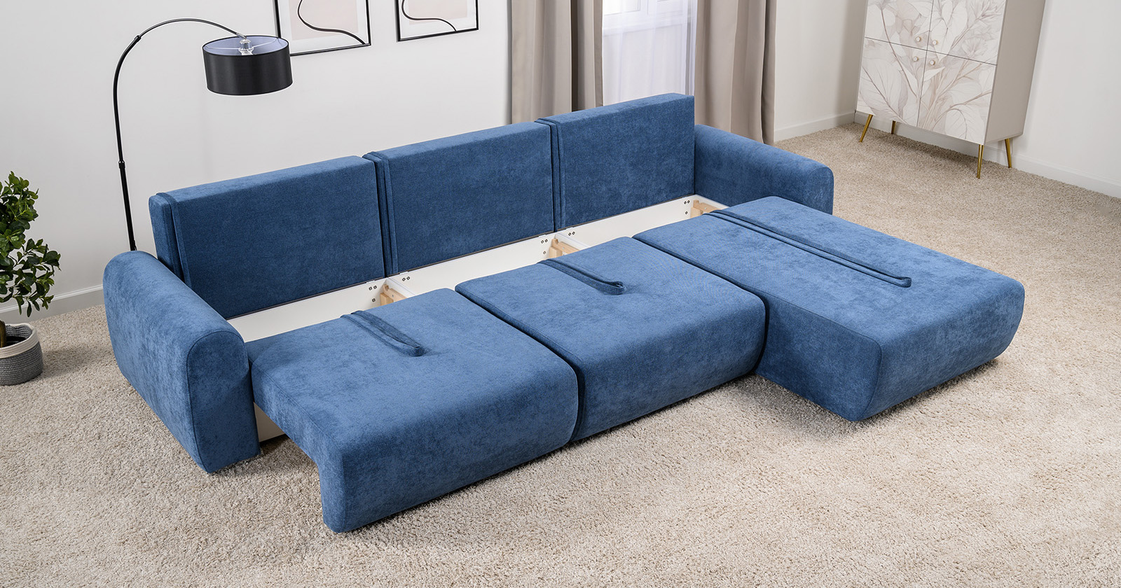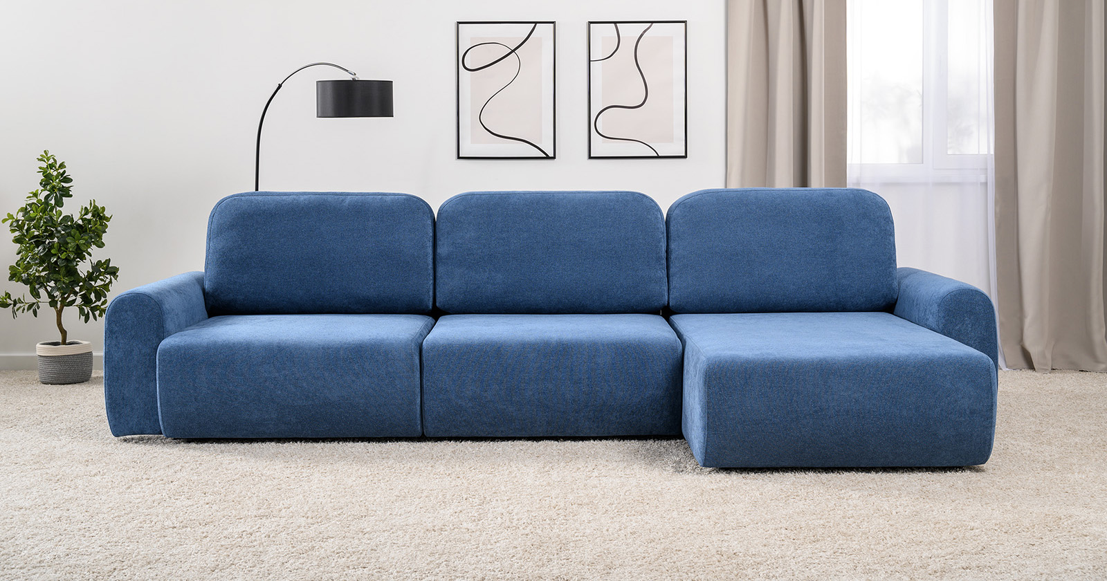 Диван-кровать угловой Тэдди 1504 композиция 3, букле Pique 009 синий, модульная система, сборка на любую сторону
