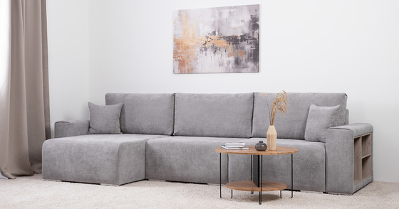 Удобный угловой диван Атлант с оттоманкой СО столиком, сборка возможна на любую сторону.