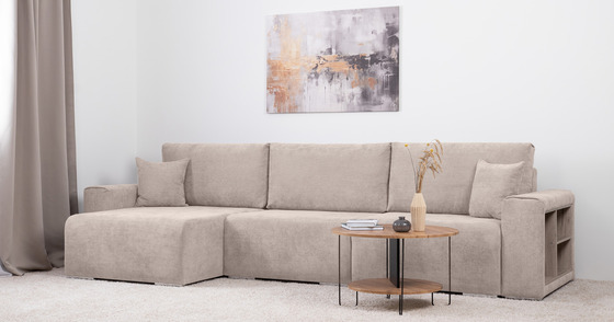 Диван-кровать угловой Атлант велюр бежевый со спальным местом (сборка на любую сторону)