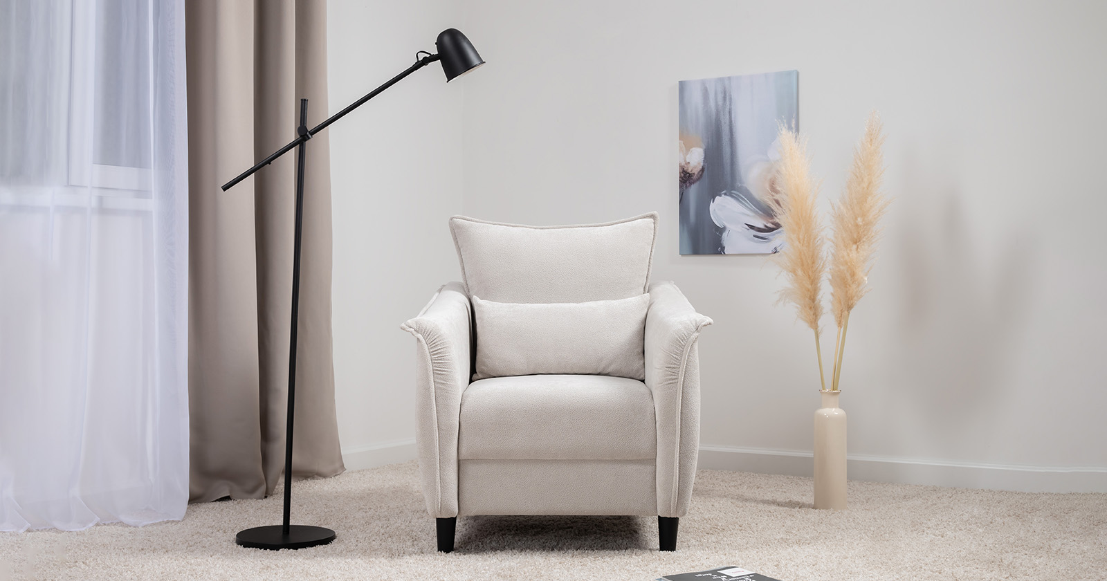 Изогнутые подлокотники в форме лепестков придают коллекции изысканный и элегантный вид, а дополнительные декоративные подушки обеспечат поддержку поясницы и помогут уютно устроиться на кресле.