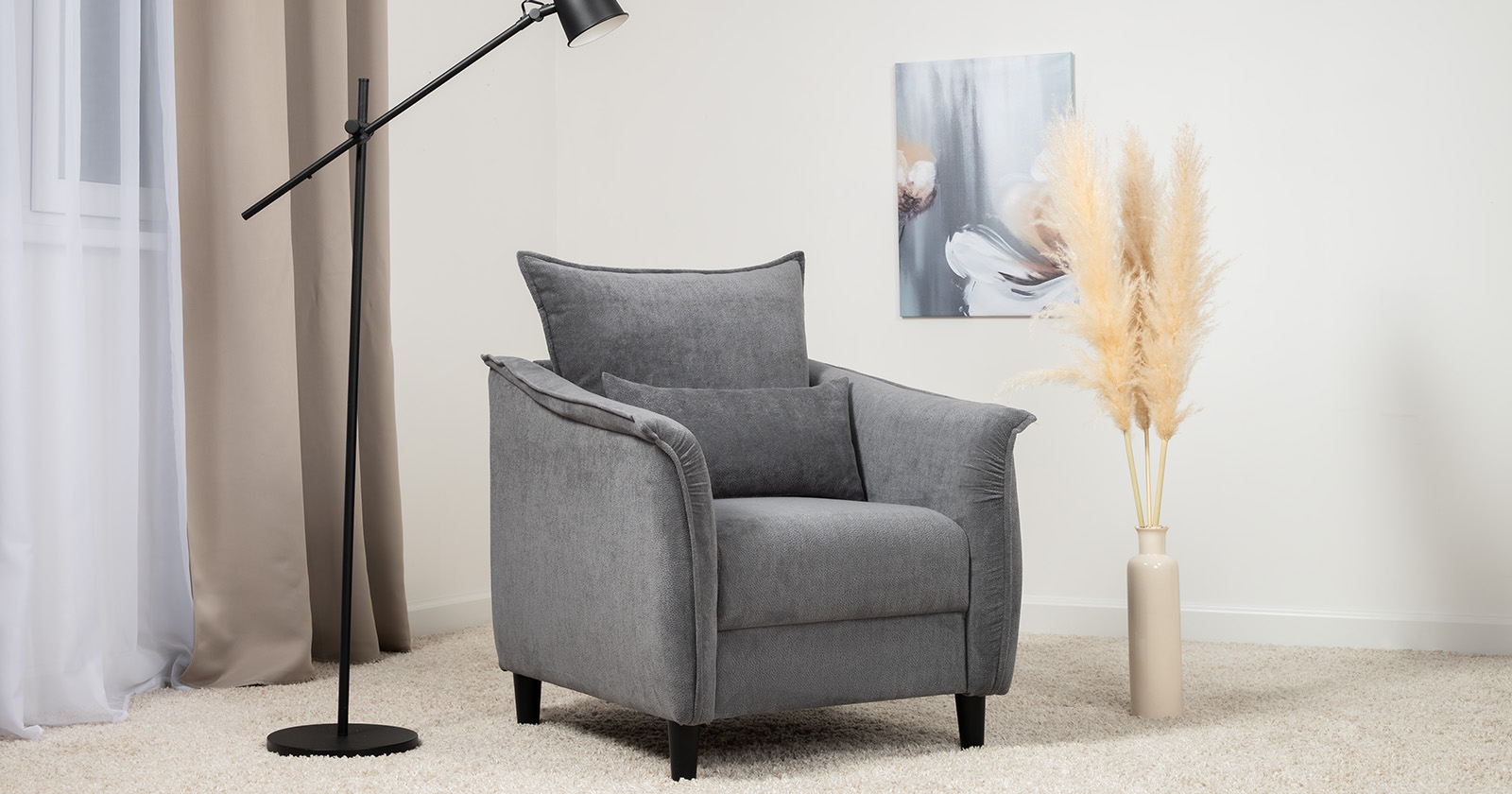 Изогнутые подлокотники в форме лепестков придают коллекции изысканный и элегантный вид, а дополнительные декоративные подушки обеспечат поддержку поясницы и помогут уютно устроиться на кресле.
