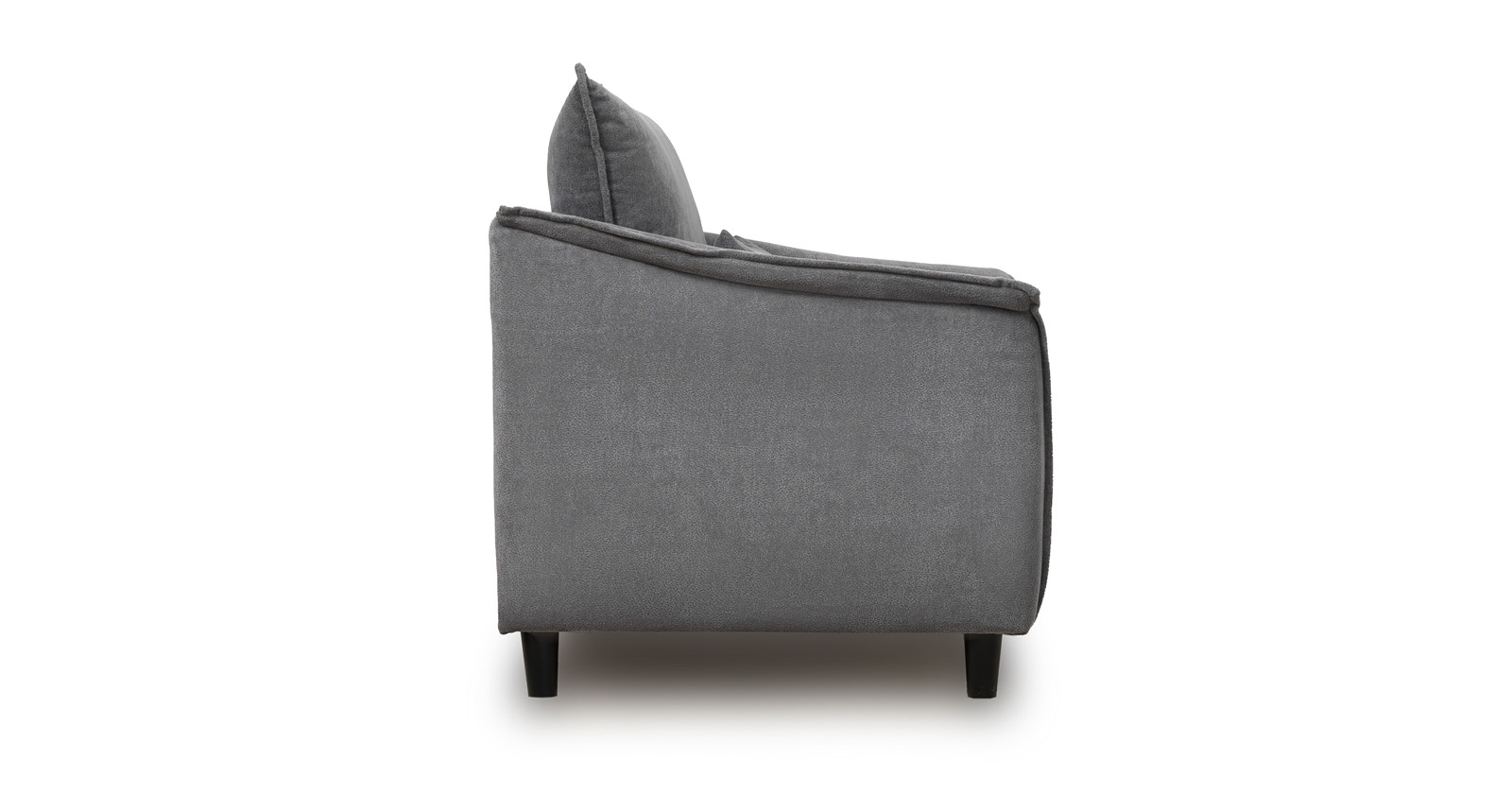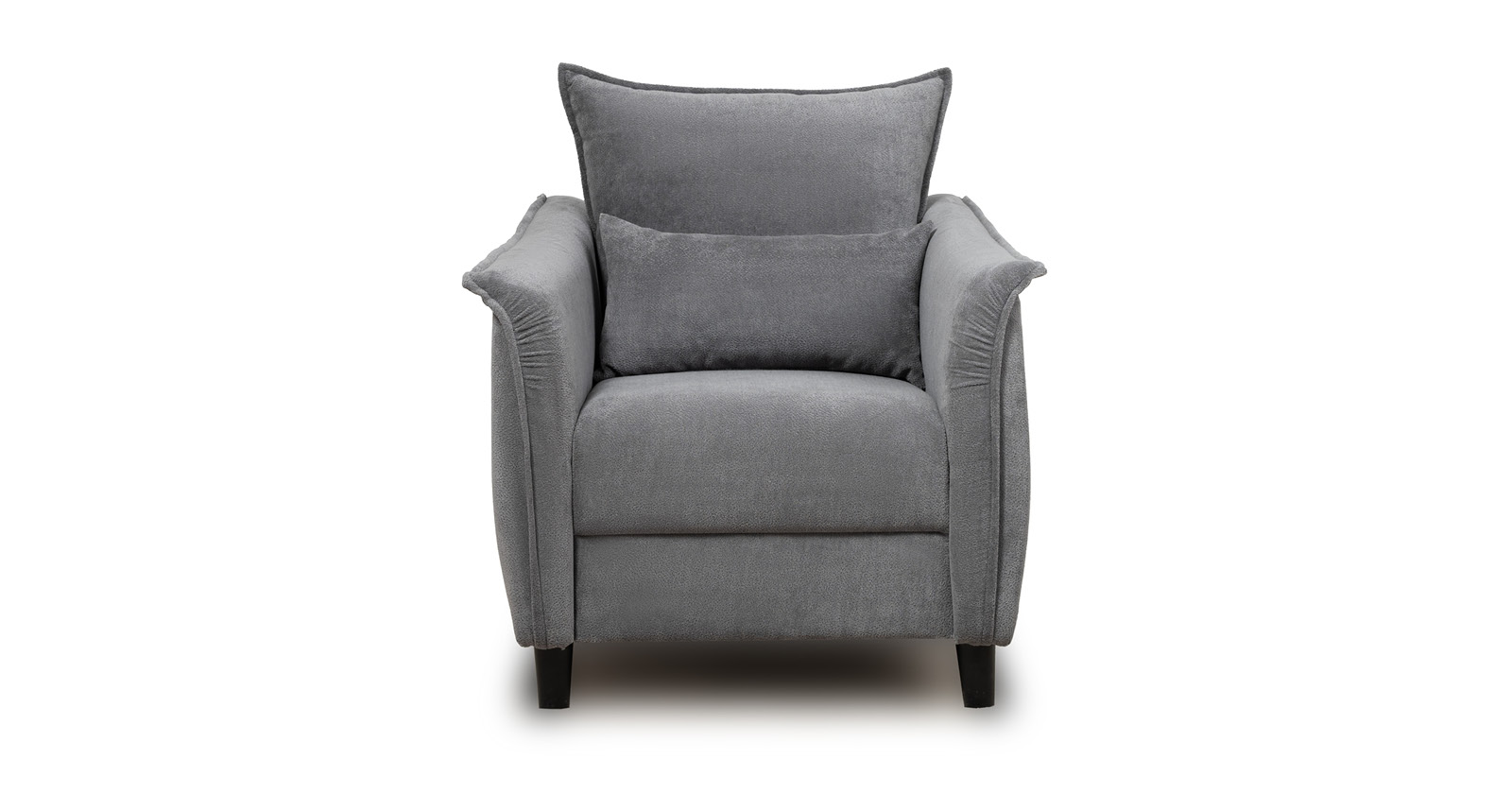 Кресло с приспинной подушкой трапецивидной формы на молнии, по трем сторонам которой проложена отделочная строчка на 1,2 см. По контуру боковин проложен декоративный кант на 1,2 см основной ткани. Кант проходит по центру передней части боковины, а по внутренней верхней части сборка.