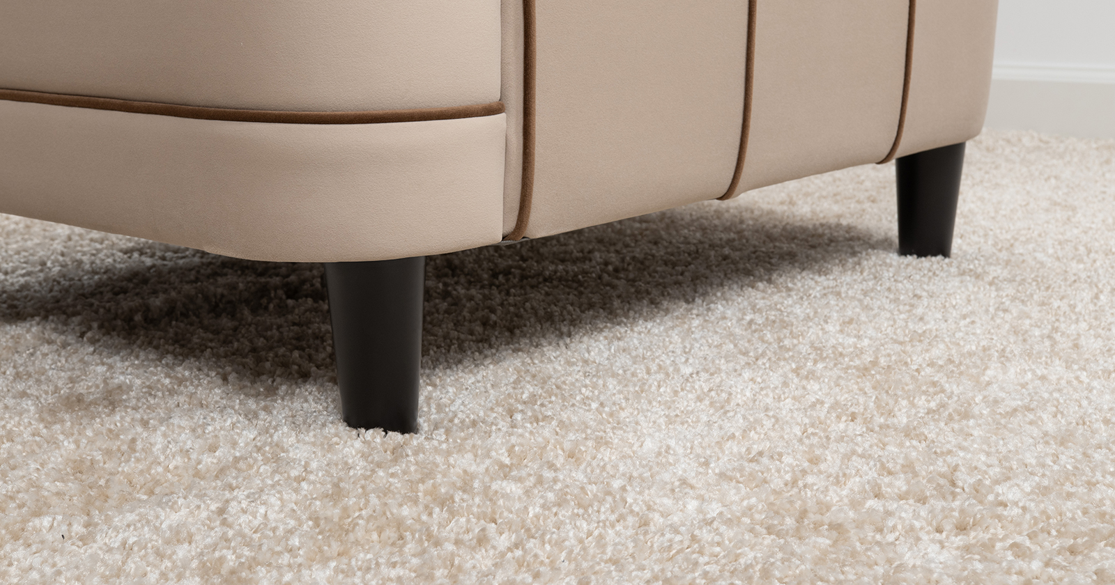 Декоративные канты на вставке подлокотников. Пуговицы в местах пересечения кантов на подушке и вставке подлокотников. По торцам подлокотников и думках контрастный декоративный кант. Защипы на сиденье и подушке.