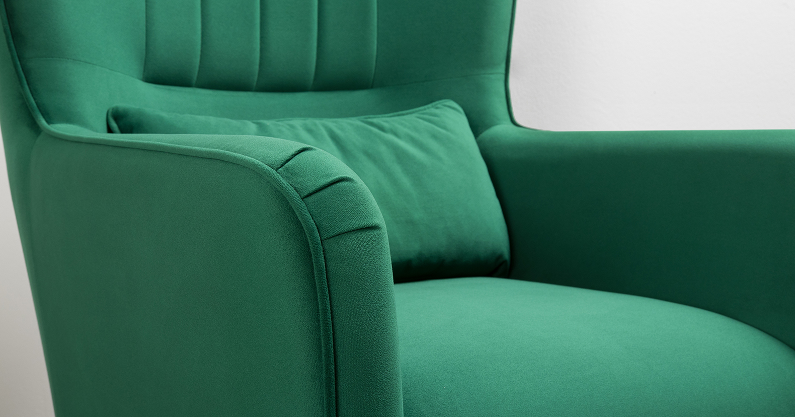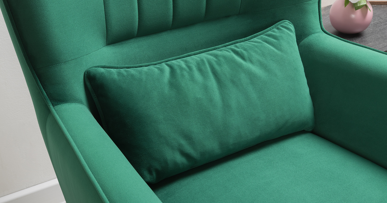 Вертикальная объемная стежка в средней части спинки; кант на спинке, подлокотниках и декоративной подушке