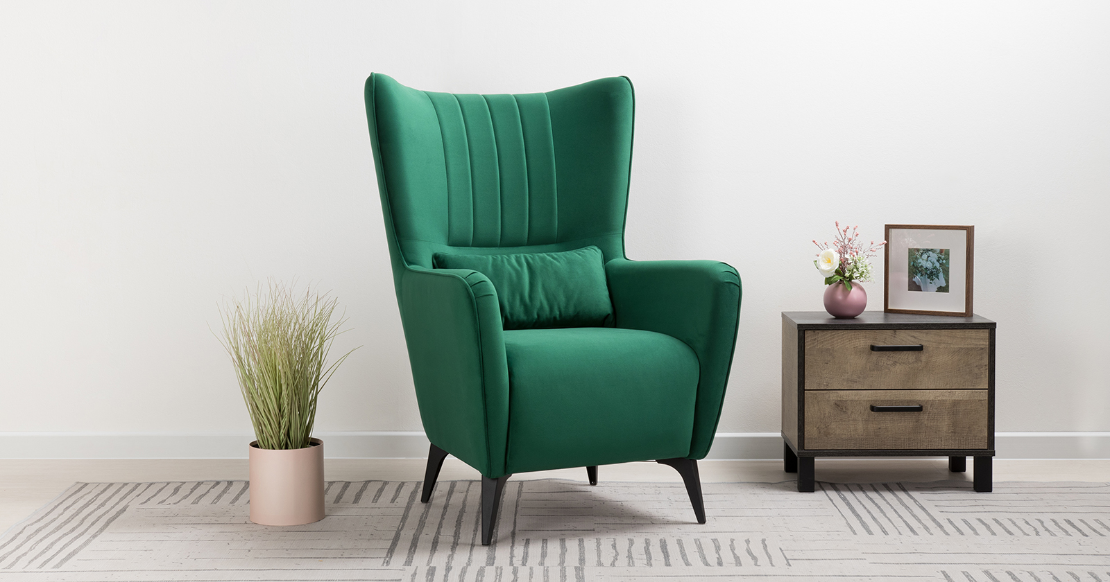 Классическое каминное кресло в современном прочтении. Элегантное кресло дополнит диван Ноэль или поможет организовать уголок для отдыха в гостиной, спальне или на лоджии. Высокая спинка с поясничной подушкой равномерно распределяет нагрузку на позвоночник, что позволяет качественно отдохнуть и расслабиться.