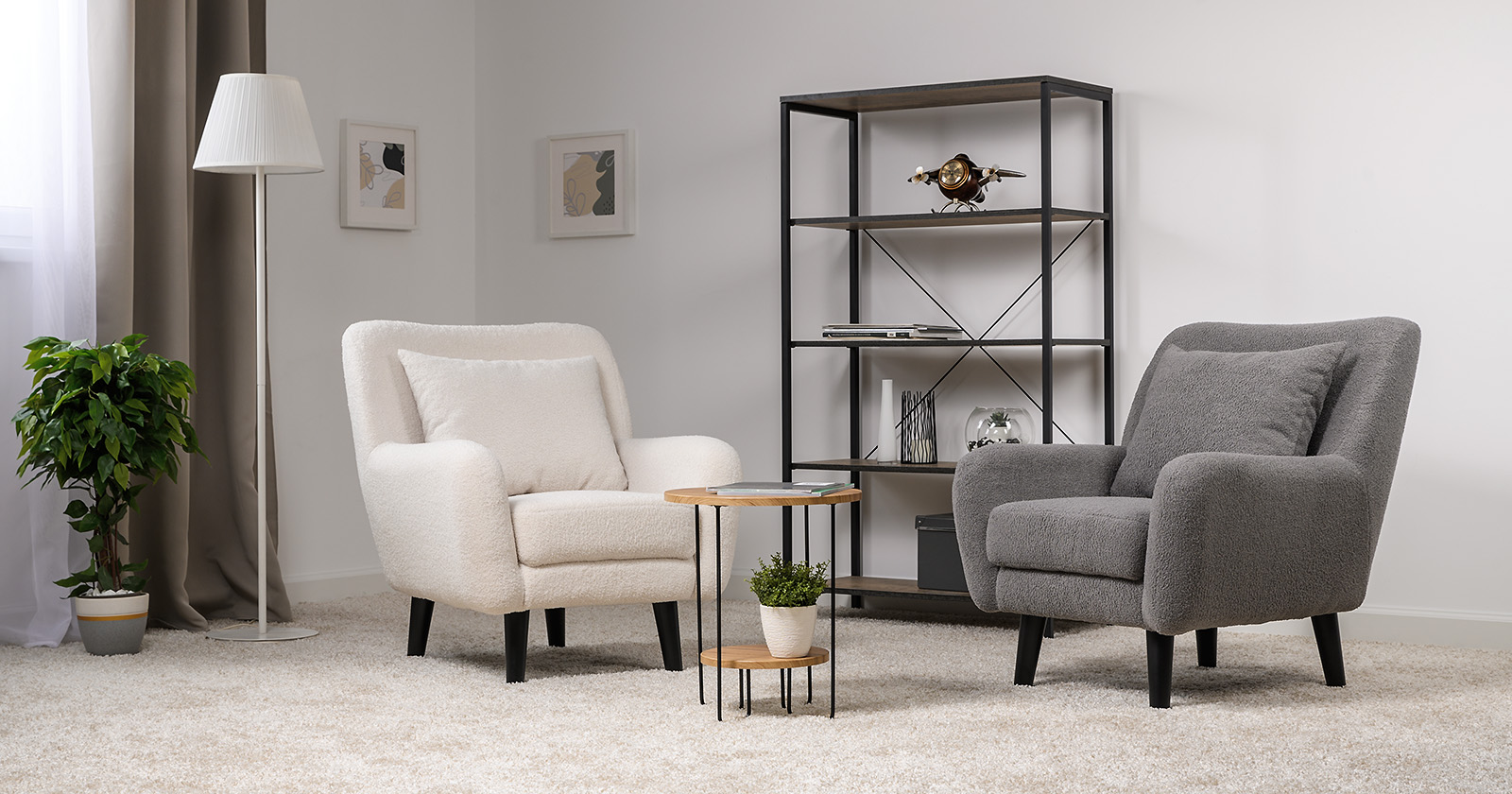 Ткань букле делает кресло особенно уютным и мягким. Приспинная подушка в цвете кресла