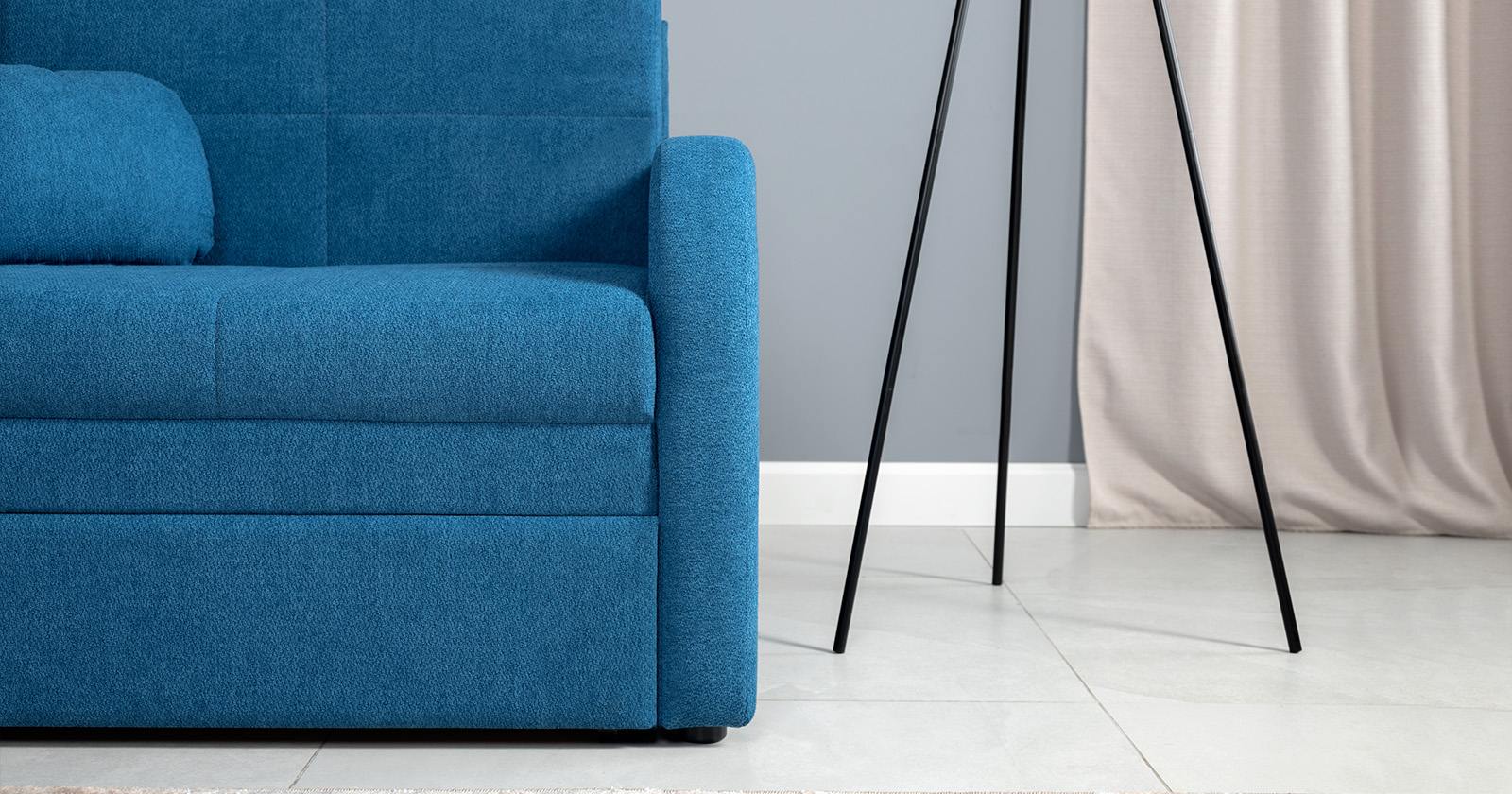 Коллекция выполнена в современном минималистичном стиле с мягкой обивкой из износостойкой ткани и декоративной стежкой, подчеркивающей геометрию форм. Механизм трансформации обеспечивает дополнительное спальное место, делая мебель не только эстетичной, но и максимально функциональной для небольших пространств.