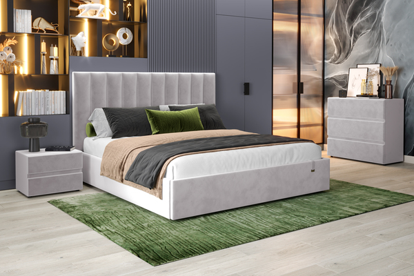Подъемный механизм легок в управлении, а вместительный короб внутри кровати подойдет для хранения подушек, белья и других вещей. Мягкие тканевые ручки облегчают процесс подъема основания. Купить кровать можно удобным способом: оформить заказ в интернет- магазине, положив товар в корзину. С кроватями можно приобрести комод и тумбу «Ester». Ткань обивки возможно выбрать в цвет с кроватью, из представленных вариантов велюра.