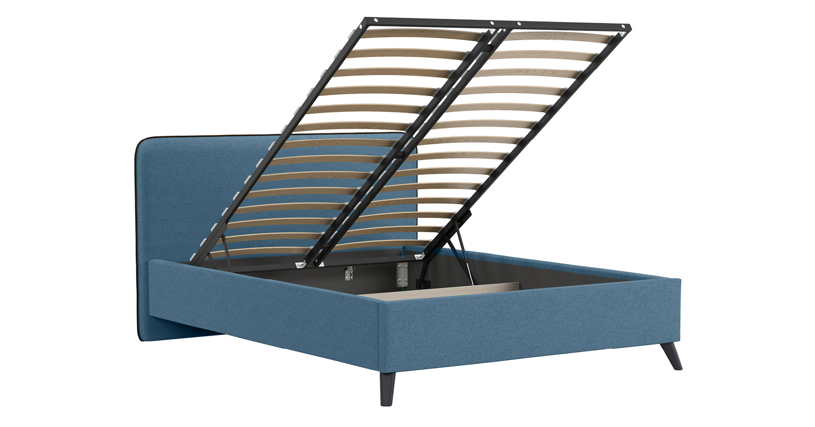 Основание кровати укомплектовано матрасодержателями. Жесткое кроватное дно из МДФ 6 мм. Задняя стенка изголовья выполнена в тех. ткани (спанбонд).