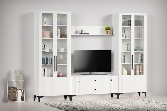 Данную коллекцию отличает высокая функциональность использования пространства и смелая лаконичность геометрических форм. Модные цвет и текстура соответствуют трендам европейского мебельного дизайна последних лет. Распашные двери на четырёхшарнирных петлях без доводчиков, используется механизм Push. Выкатные ящики на шариковых направляющих, используется механизм Push. Верхние горизонтальные откидные двери на газлифтах, без механизма Push, открываются за край фасада. (Механизм Push - открывание нажатием на фасад)