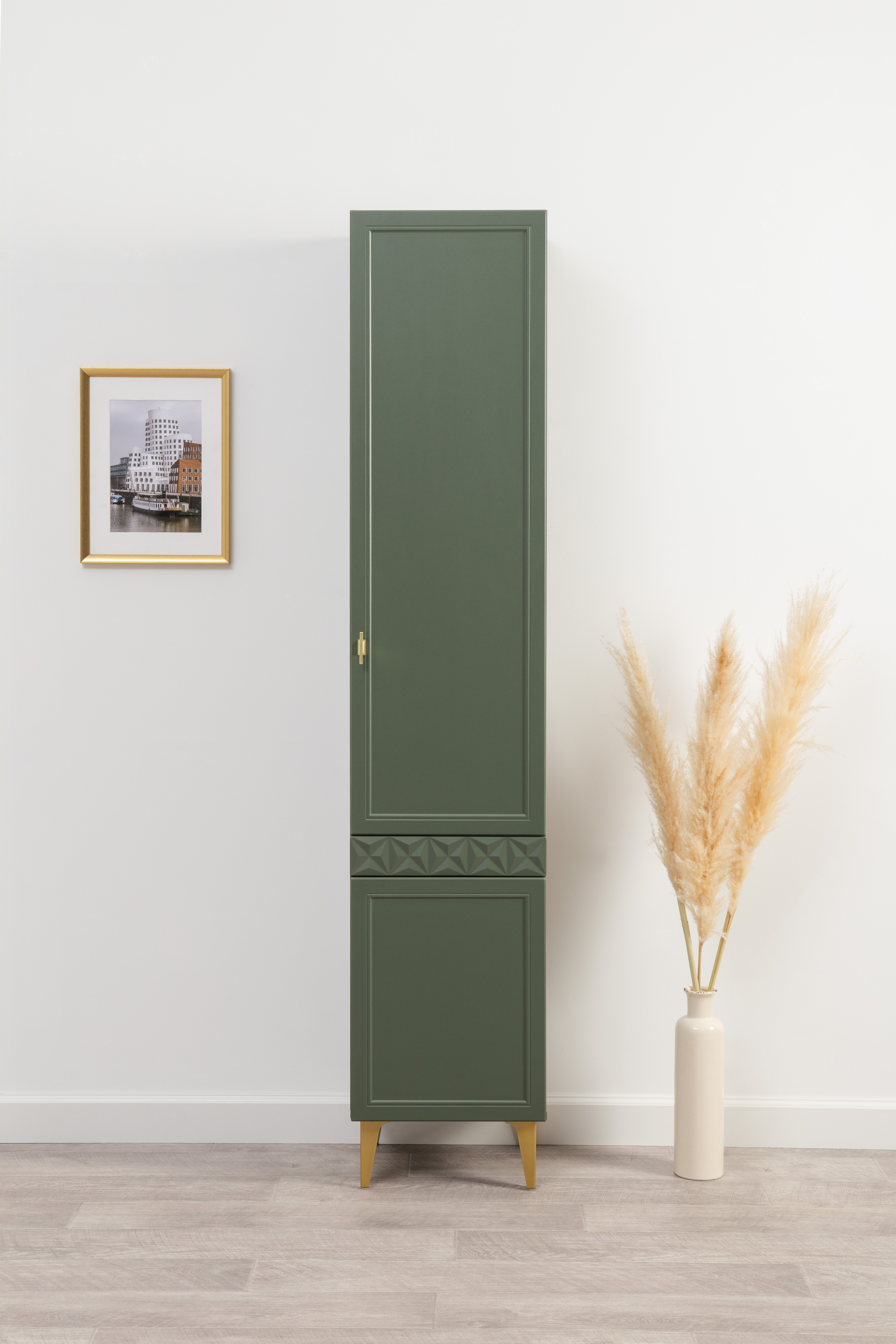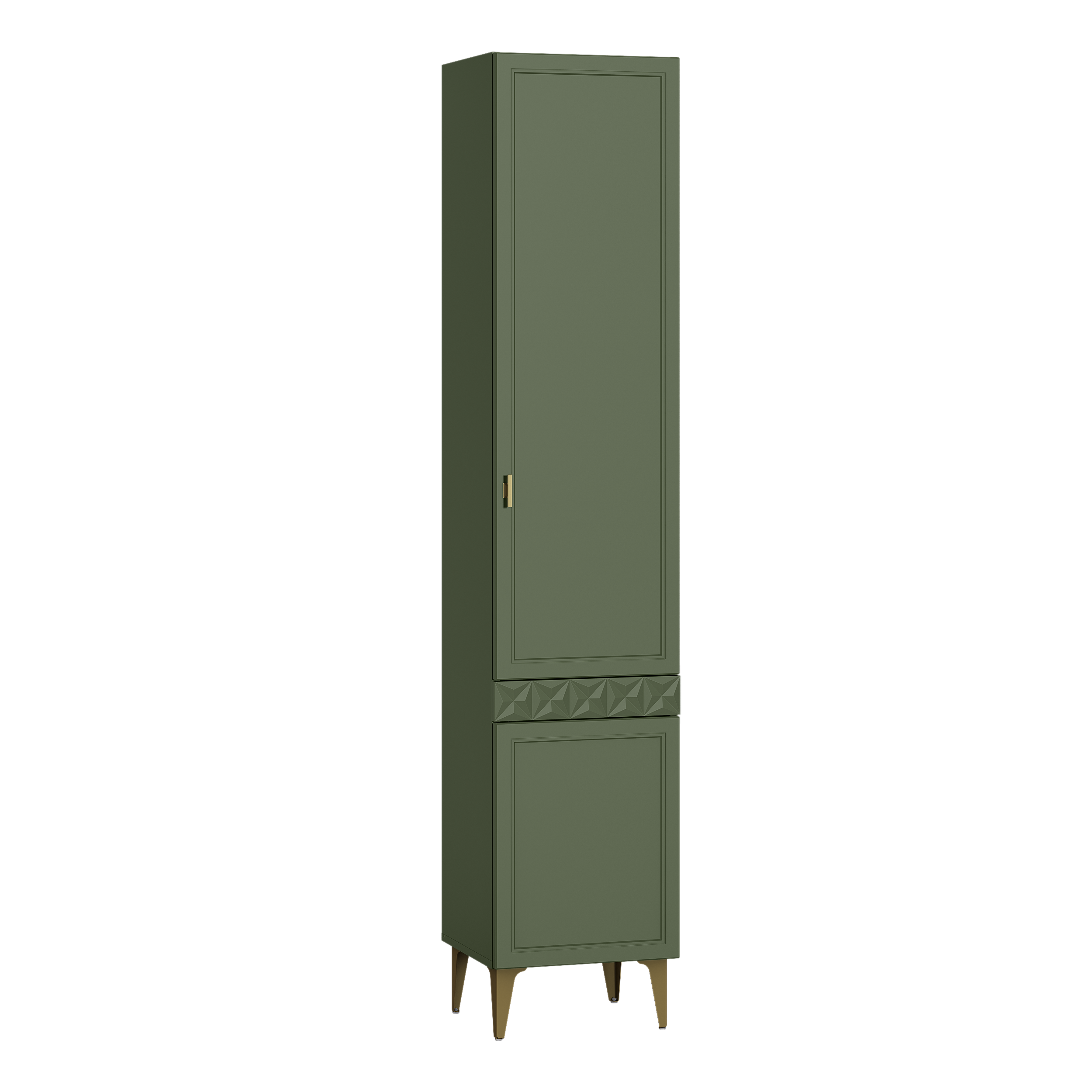 Шкаф-пенал Марион 16.333.01 дымчатый зеленый K521, олива шагрень AG 1050 ПВХ (собирается на любую сторону)