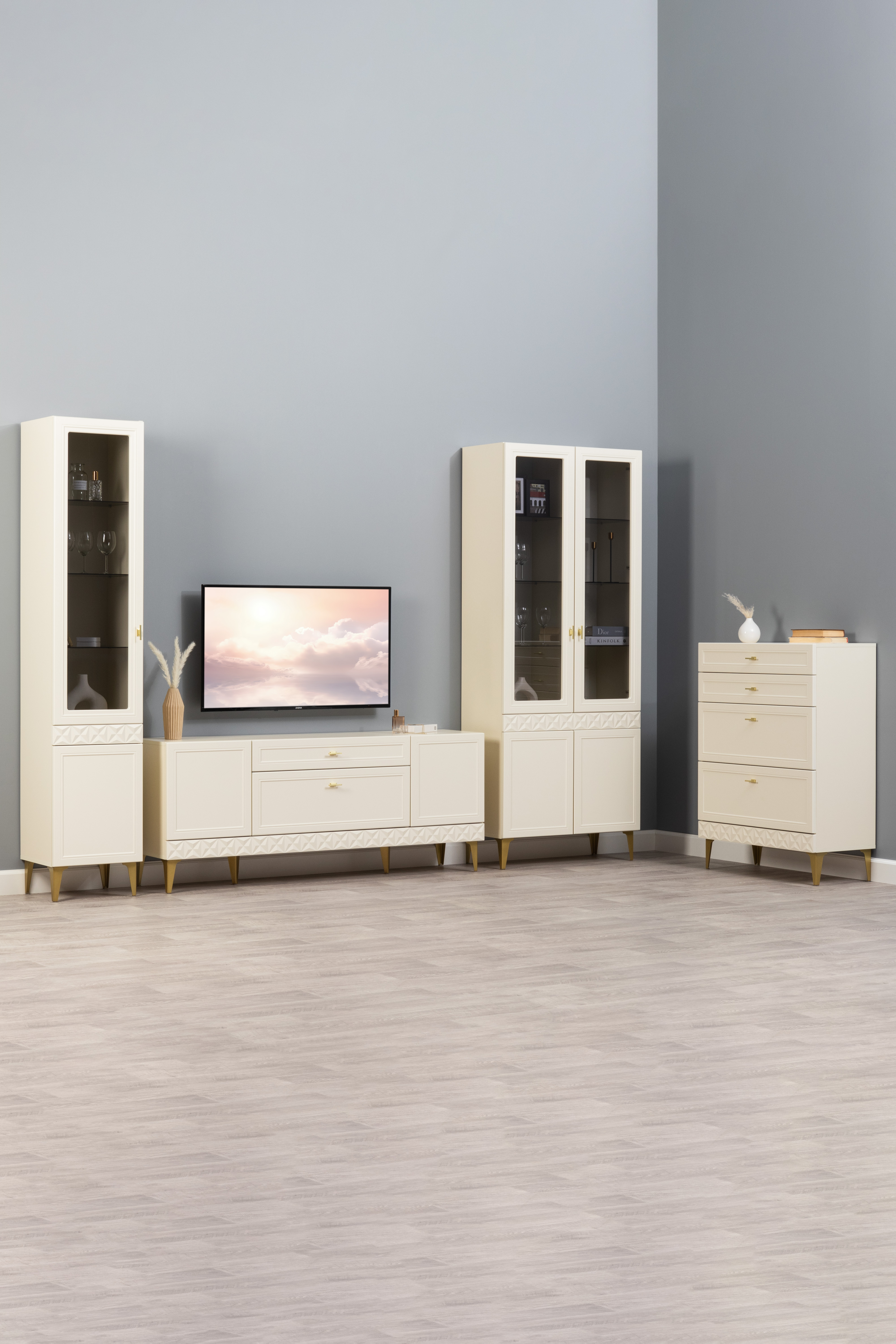 Шкаф-витрина Марион 16.397.01 слоновая кость С341 PE, слоновая кость 6898 ПВХ (собирается на любую сторону)