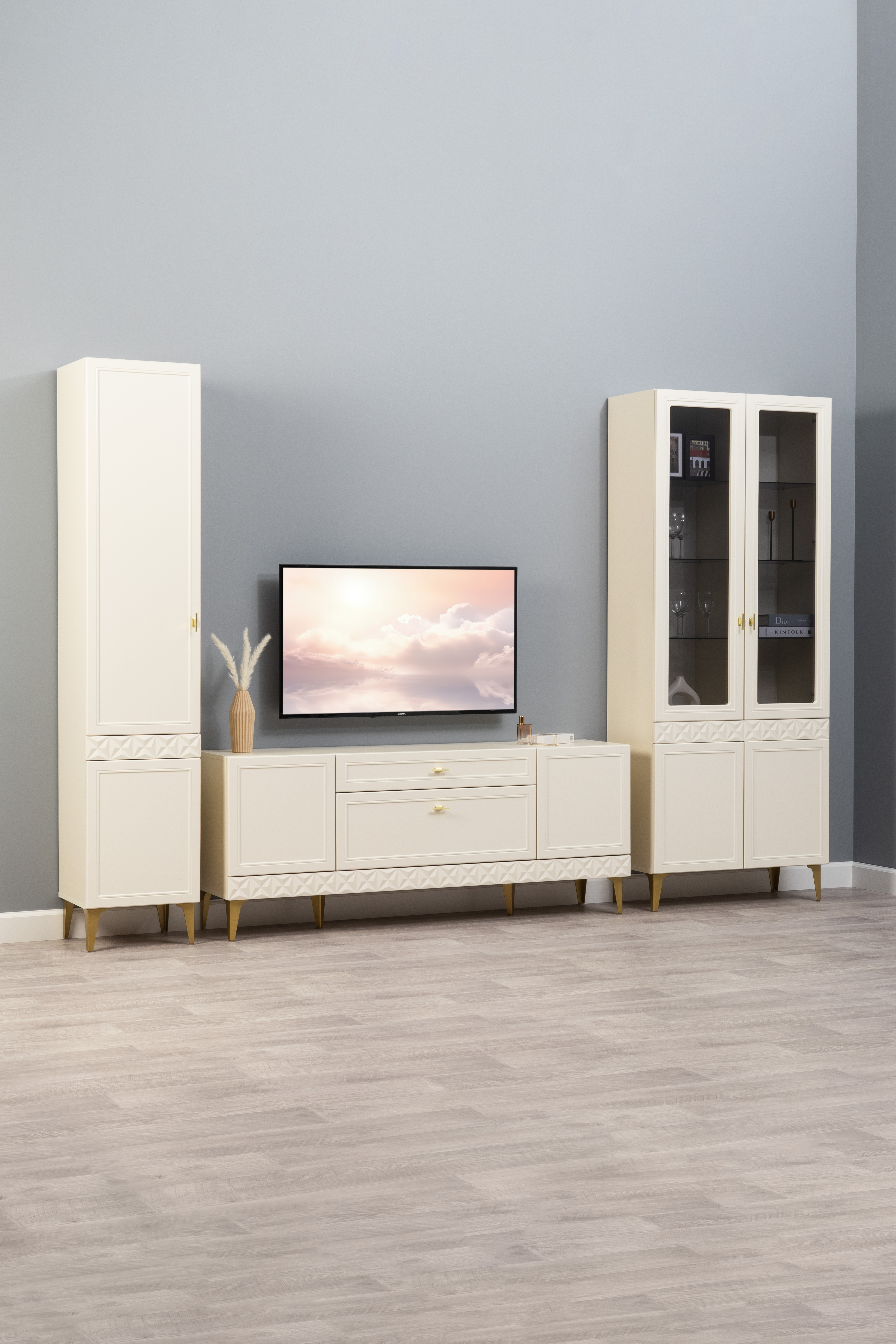 Изящные линии, глубокая фрезеровка фасадов из МДФ и благородные оттенки. Утончённая «Слоновая кость» и изысканная «Олива Шагрень» с глубоким зелёным тоном — создают атмосферу уюта, тепла и благородства. Металлические ручки и опоры золотого цвета придают мебели утончённый блеск, а петли и направляющие с доводчиками обеспечивают плавное и бесшумное закрытие фасадов.