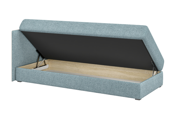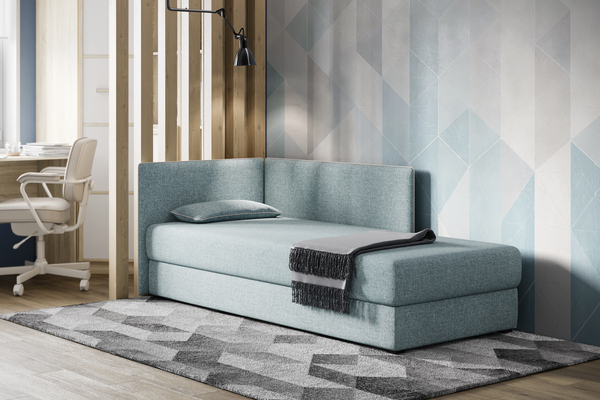 Тахта MIA левая рогожка Sherlock 975 серо-голубой, кожзам Madrit 982 коричневый