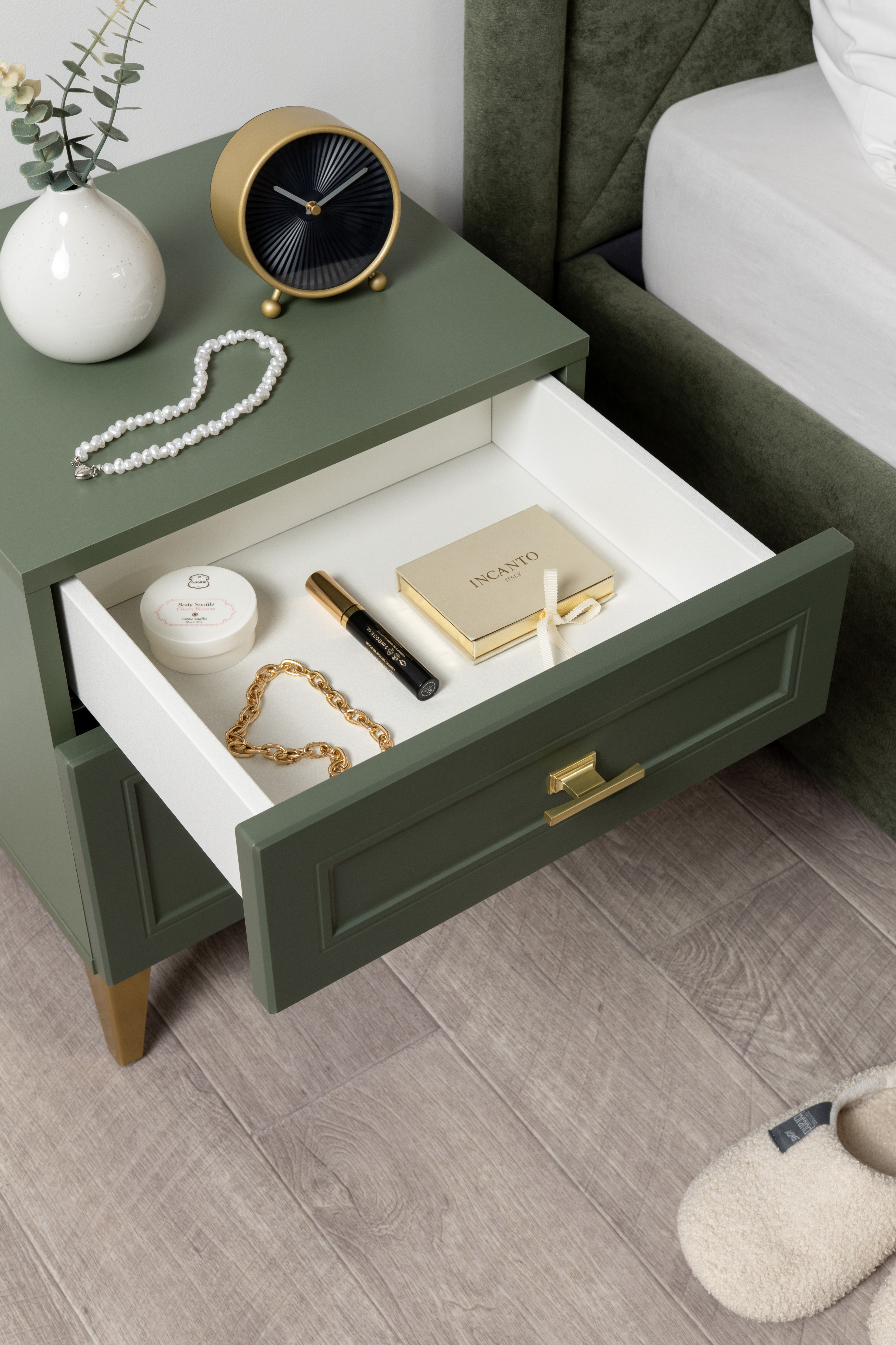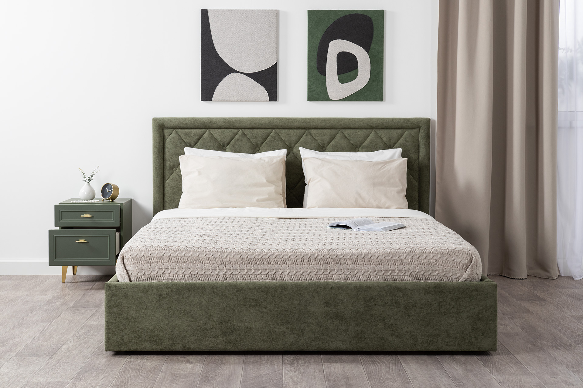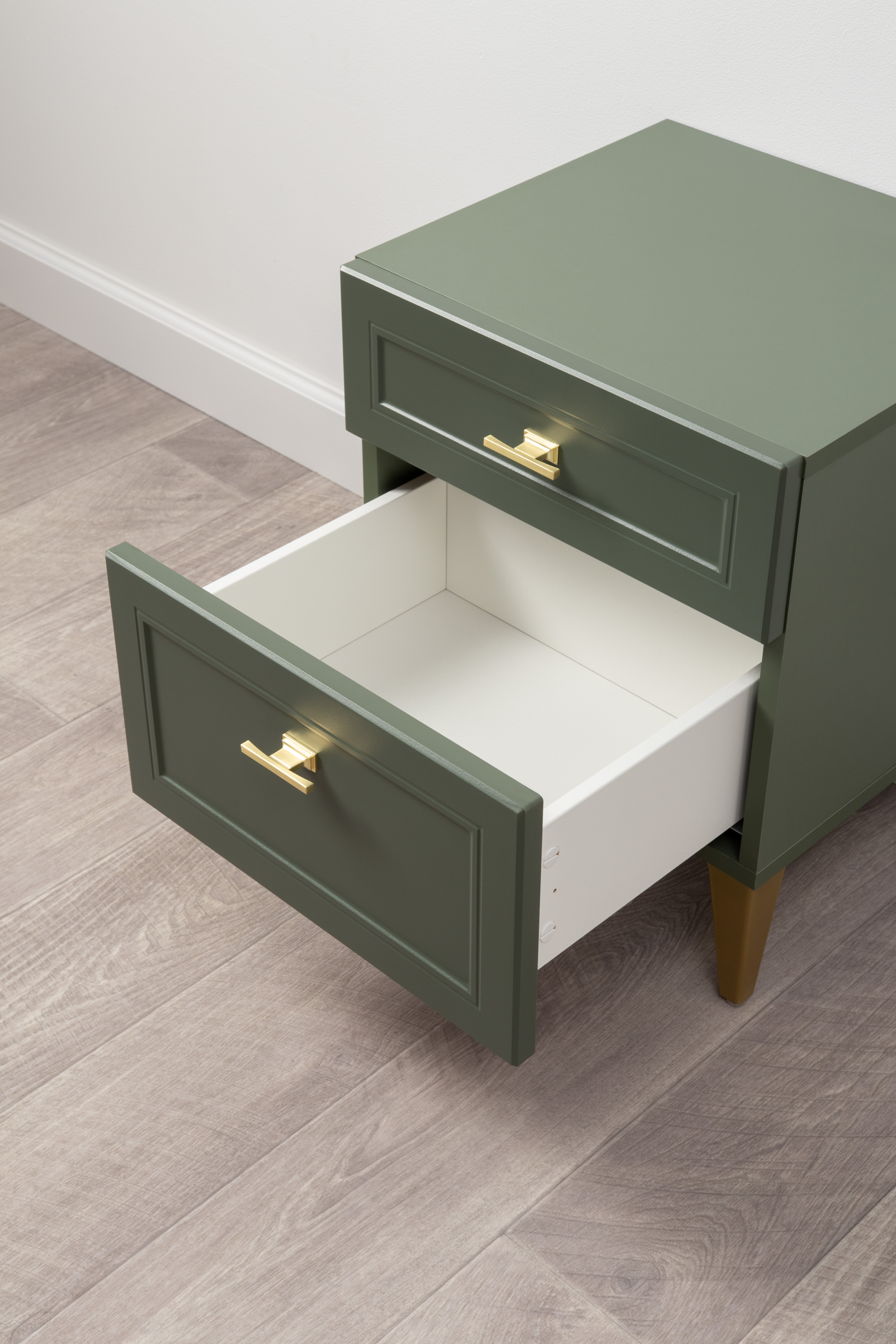 Тумба прикроватная Марион 16.14 дымчатый зеленый K521, олива шагрень AG 1050 ПВХ, белый PE шагрень